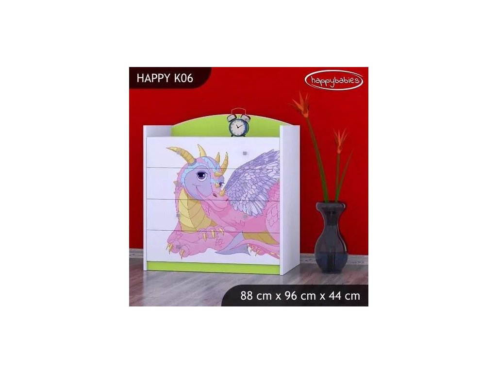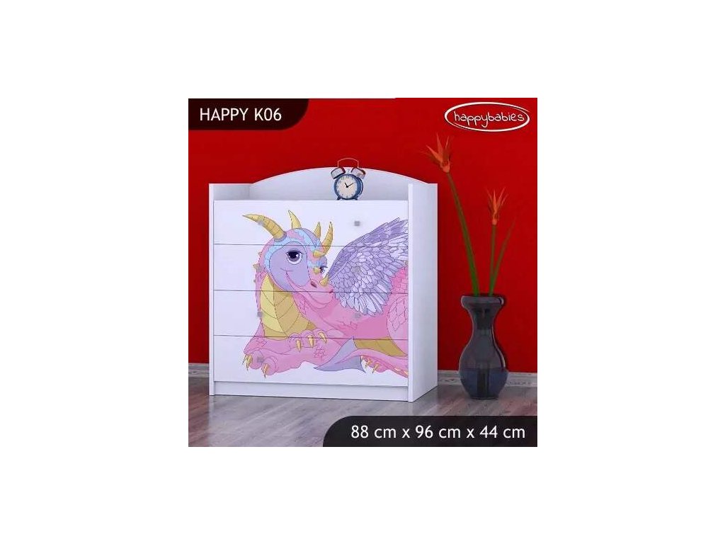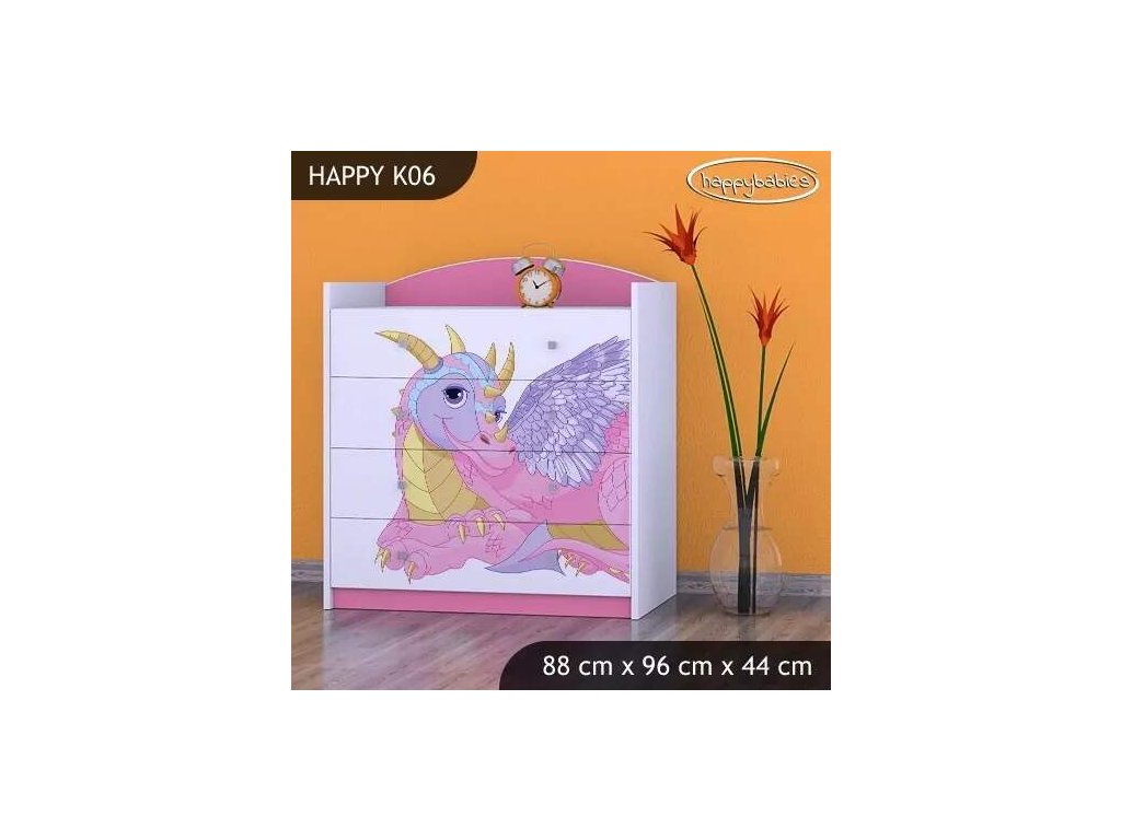 Komoda Happy K06 - růžový dráček