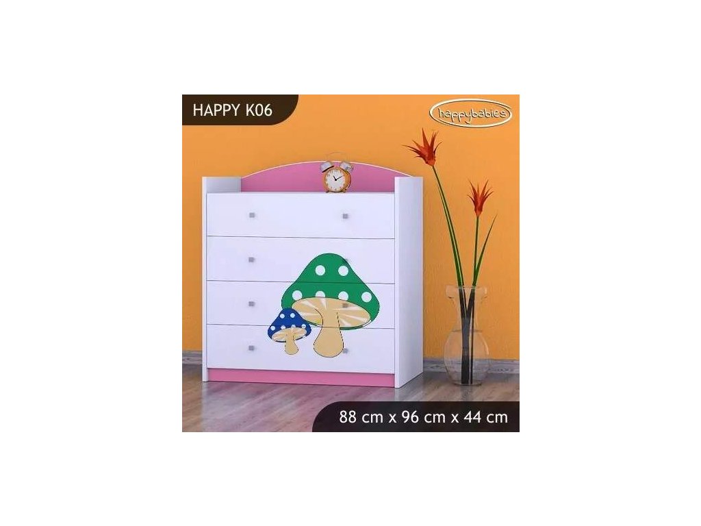 Dětské komody patří k základní výbavě každého pokojíčku. Komody jsou velmi praktické a můžeme je použít jak na oblečení pro děti, tak na hračky nebo knížky. Komoda obsahuje 4 šuplíky. Materiál: lamino 18 mm Barva: růžová, bílá, kaštan wenge, kalvados, buk, hruška, zelená, modrá, oranžová Rozměr: 88 cm x 96 cm x 44 cm Ve stejném motivu si můžete zakoupit také skříň, regál, knihovnu, psací stůl, noční stolek, box na hračky nebo poličku.Buďte první, kdo napíše příspěvek k této položce.