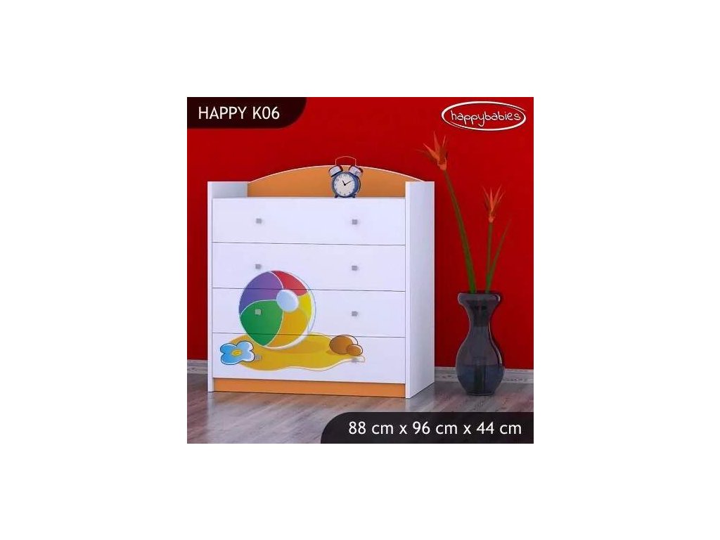 Dětské komody patří k základní výbavě každého pokojíčku. Komody jsou velmi praktické a můžeme je použít jak na oblečení pro děti, tak na hračky nebo knížky. Komoda obsahuje 4 šuplíky. Materiál: lamino 18 mm Barva: růžová, bílá, kaštan wenge, kalvados, buk, hruška, zelená, modrá, oranžová Rozměr: 88 cm x 96 cm x 44 cm Ve stejném motivu si můžete zakoupit také skříň, regál, knihovnu, psací stůl, noční stolek, box na hračky nebo poličku.Buďte první, kdo napíše příspěvek k této položce.