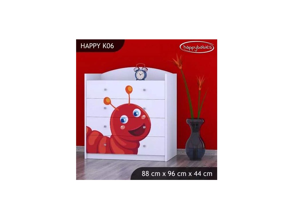 Dětské komody patří k základní výbavě každého pokojíčku. Komody jsou velmi praktické a můžeme je použít jak na oblečení pro děti, tak na hračky nebo knížky. Komoda obsahuje 4 šuplíky. Materiál: lamino 18 mm Barva: růžová, bílá, kaštan wenge, kalvados, buk, hruška, zelená, modrá, oranžová Rozměr: 88 cm x 96 cm x 44 cm Ve stejném motivu si můžete zakoupit také skříň, regál, knihovnu, psací stůl, noční stolek, box na hračky nebo poličku.Buďte první, kdo napíše příspěvek k této položce.