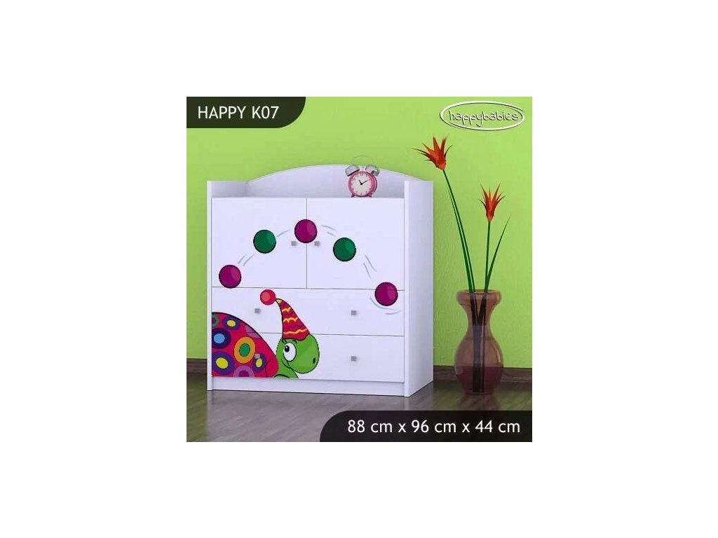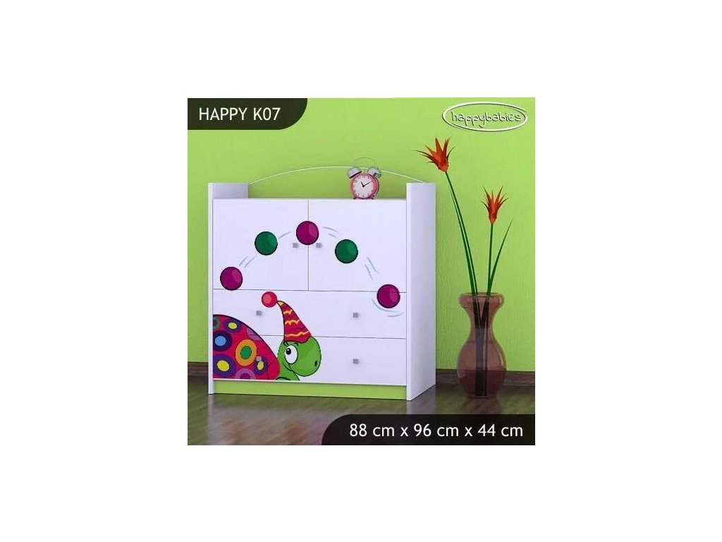 Dětské komody patří k základní výbavě každého pokojíčku. Komody jsou velmi praktické a můžeme je použít jak na oblečení pro děti, tak na hračky nebo knížky. Materiál: lamino 18 mm Barva: růžová, bílá, kaštan wenge, kalvados, buk, hruška, zelená, modrá, oranžová Rozměr: 88 cm x 96 cm x 44 cm Ve stejném motivu si můžete zakoupit také skříň, regál, knihovnu, psací stůl, noční stolek, box na hračky nebo poličku.Buďte první, kdo napíše příspěvek k této položce.
