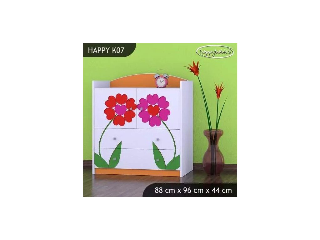 Dětské komody patří k základní výbavě každého pokojíčku. Komody jsou velmi praktické a můžeme je použít jak na oblečení pro děti, tak na hračky nebo knížky. Materiál: lamino 18 mm Barva: růžová, bílá, kaštan wenge, kalvados, buk, hruška, zelená, modrá, oranžová Rozměr: 88 cm x 96 cm x 44 cm Ve stejném motivu si můžete zakoupit také skříň, regál, knihovnu, psací stůl, noční stolek, box na hračky nebo poličku.Buďte první, kdo napíše příspěvek k této položce.