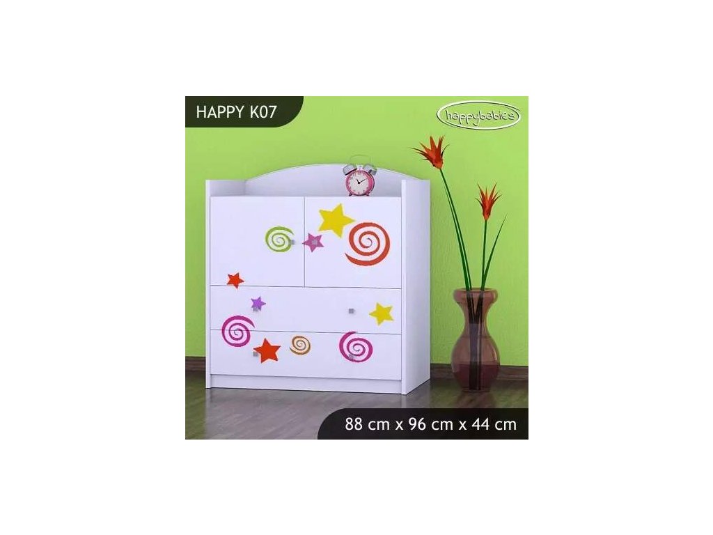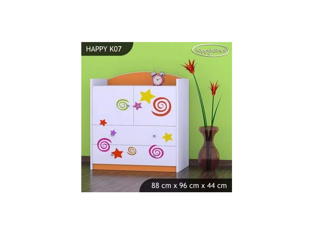 Dětské komody patří k základní výbavě každého pokojíčku. Komody jsou velmi praktické a můžeme je použít jak na oblečení pro děti, tak na hračky nebo knížky. Materiál: lamino 18 mm Barva: růžová, bílá, kaštan wenge, kalvados, buk, hruška, zelená, modrá, oranžová Rozměr: 88 cm x 96 cm x 44 cm Ve stejném motivu si můžete zakoupit také skříň, regál, knihovnu, psací stůl, noční stolek, box na hračky nebo poličku.Buďte první, kdo napíše příspěvek k této položce.