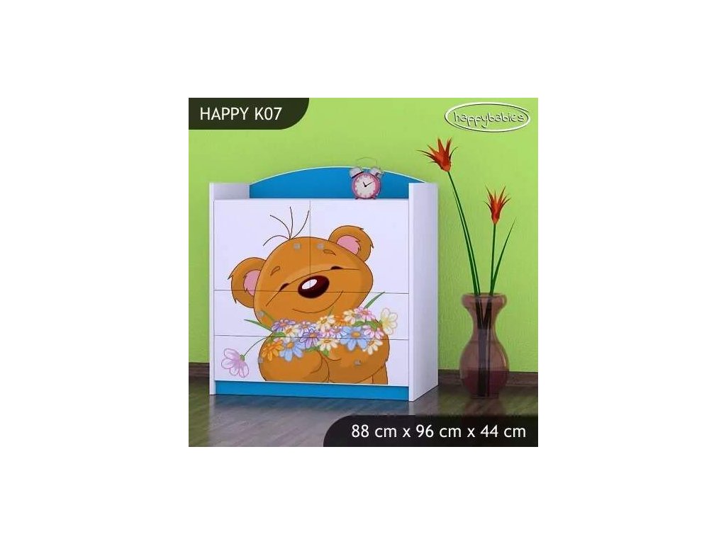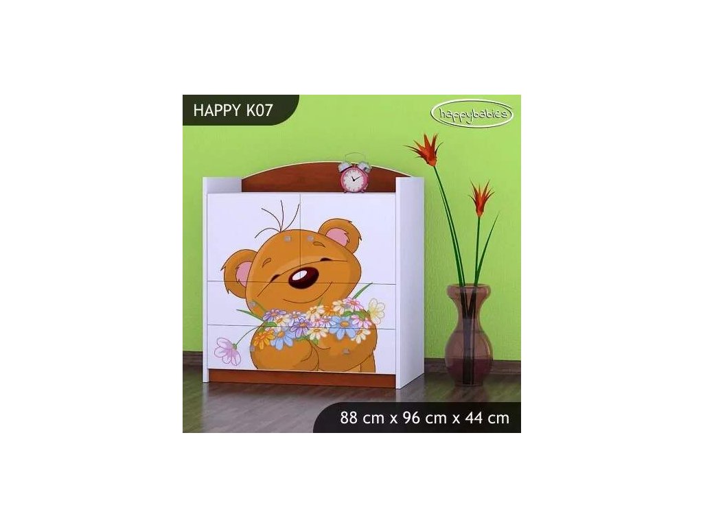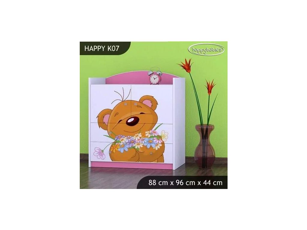 Dětské komody patří k základní výbavě každého pokojíčku. Komody jsou velmi praktické a můžeme je použít jak na oblečení pro děti, tak na hračky nebo knížky. Materiál: lamino 18 mm Barva: růžová, bílá, kaštan wenge, kalvados, buk, hruška, zelená, modrá, oranžová Rozměr: 88 cm x 96 cm x 44 cm Ve stejném motivu si můžete zakoupit také skříň, regál, knihovnu, psací stůl, noční stolek, box na hračky nebo poličku.Buďte první, kdo napíše příspěvek k této položce.