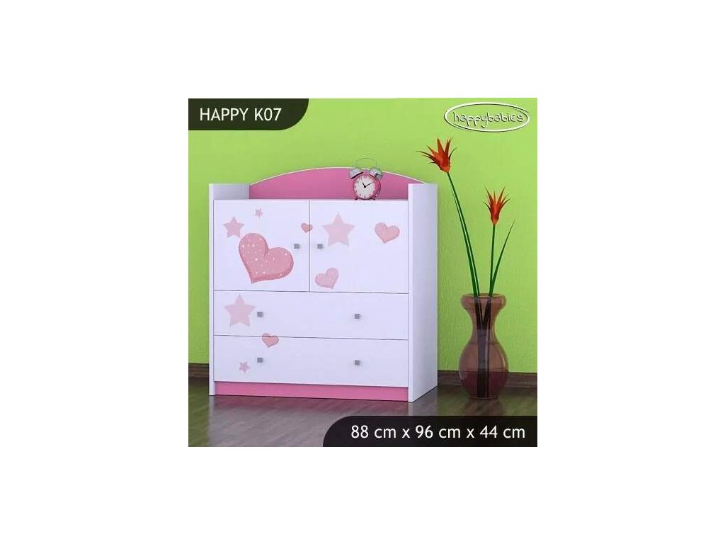 Dětské komody patří k základní výbavě každého pokojíčku. Komody jsou velmi praktické a můžeme je použít jak na oblečení pro děti, tak na hračky nebo knížky. Materiál: lamino 18 mm Barva: růžová, bílá, kaštan wenge, kalvados, buk, hruška, zelená, modrá, oranžová Rozměr: 88 cm x 96 cm x 44 cm Ve stejném motivu si můžete zakoupit také skříň, regál, knihovnu, psací stůl, noční stolek, box na hračky nebo poličku.Buďte první, kdo napíše příspěvek k této položce.