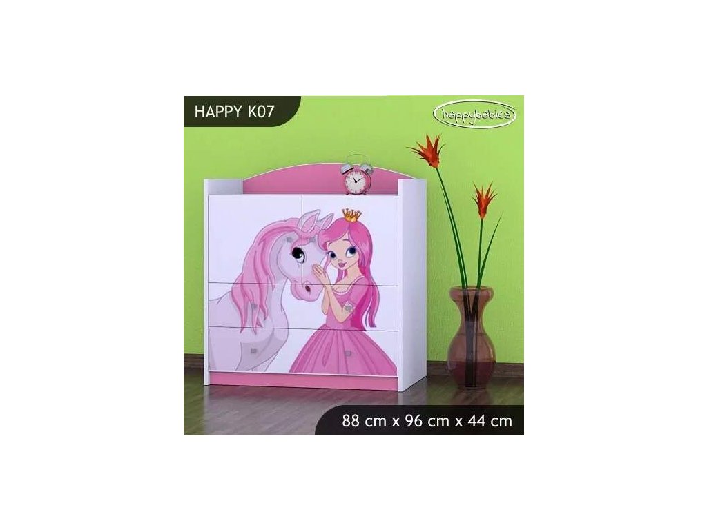 Dětské komody patří k základní výbavě každého pokojíčku. Komody jsou velmi praktické a můžeme je použít jak na oblečení pro děti, tak na hračky nebo knížky. Materiál: lamino 18 mm Barva: růžová, bílá, kaštan wenge, kalvados, buk, hruška, zelená, modrá, oranžová Rozměr: 88 cm x 96 cm x 44 cm Ve stejném motivu si můžete zakoupit také skříň, regál, knihovnu, psací stůl, noční stolek, box na hračky nebo poličku.Buďte první, kdo napíše příspěvek k této položce.
