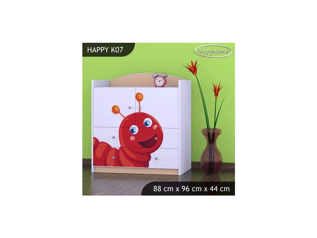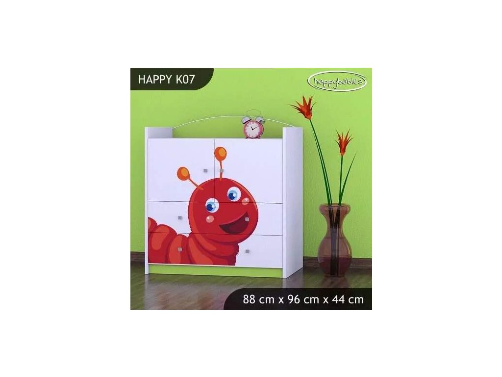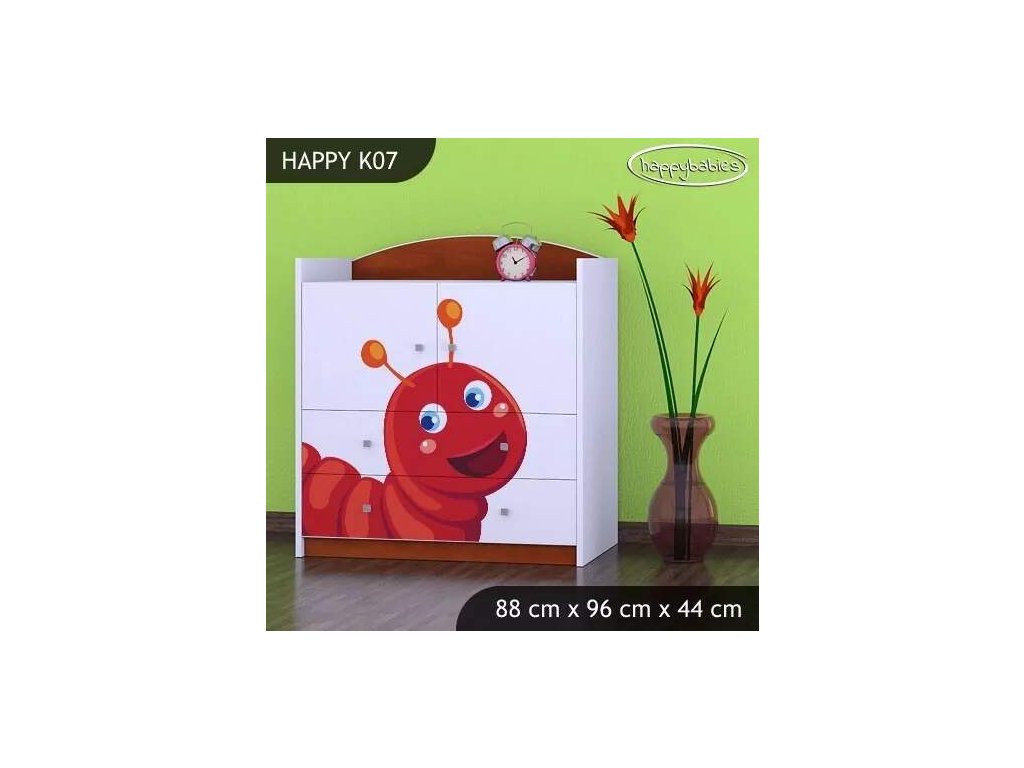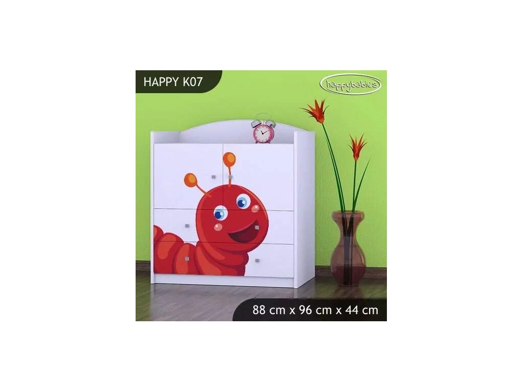 Dětské komody patří k základní výbavě každého pokojíčku. Komody jsou velmi praktické a můžeme je použít jak na oblečení pro děti, tak na hračky nebo knížky. Materiál: lamino 18 mm Barva: růžová, bílá, kaštan wenge, kalvados, buk, hruška, zelená, modrá, oranžová Rozměr: 88 cm x 96 cm x 44 cm Ve stejném motivu si můžete zakoupit také skříň, regál, knihovnu, psací stůl, noční stolek, box na hračky nebo poličku.Buďte první, kdo napíše příspěvek k této položce.