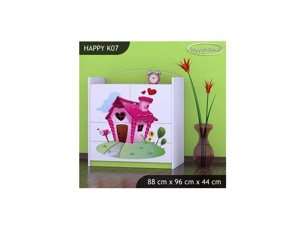 Dětské komody patří k základní výbavě každého pokojíčku. Komody jsou velmi praktické a můžeme je použít jak na oblečení pro děti, tak na hračky nebo knížky. Materiál: lamino 18 mm Barva: růžová, bílá, kaštan wenge, kalvados, buk, hruška, zelená, modrá, oranžová Rozměr: 88 cm x 96 cm x 44 cm Ve stejném motivu si můžete zakoupit také skříň, regál, knihovnu, psací stůl, noční stolek, box na hračky nebo poličku.Buďte první, kdo napíše příspěvek k této položce.