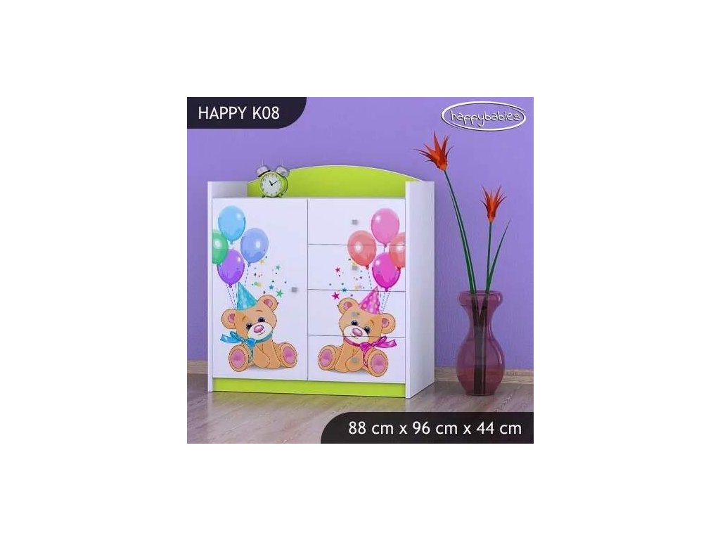 Dětské komody patří k základní výbavě každého pokojíčku. Komody jsou velmi praktické a můžeme je použít jak na oblečení pro děti, tak na hračky nebo knížky. Materiál: lamino 18 mm Barva: růžová, bílá, kaštan wenge, kalvados, buk, hruška, zelená, modrá, oranžová Rozměr: 88 cm x 96 cm x 44 cm Ve stejném motivu si můžete zakoupit také skříň, regál, knihovnu, psací stůl, noční stolek, box na hračky nebo poličku.Buďte první, kdo napíše příspěvek k této položce.