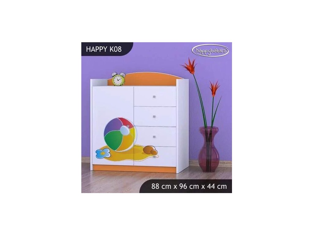 Dětské komody patří k základní výbavě každého pokojíčku. Komody jsou velmi praktické a můžeme je použít jak na oblečení pro děti, tak na hračky nebo knížky. Materiál: lamino 18 mm Barva: růžová, bílá, kaštan wenge, kalvados, buk, hruška, zelená, modrá, oranžová Rozměr: 88 cm x 96 cm x 44 cm Ve stejném motivu si můžete zakoupit také skříň, regál, knihovnu, psací stůl, noční stolek, box na hračky nebo poličku.Buďte první, kdo napíše příspěvek k této položce.