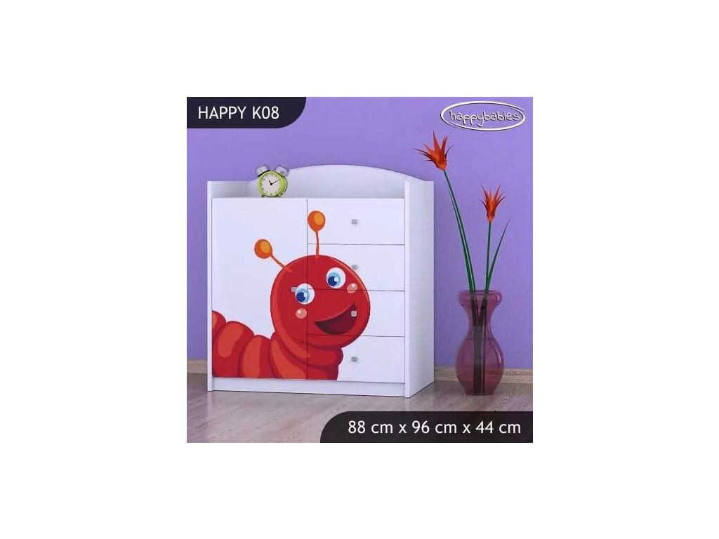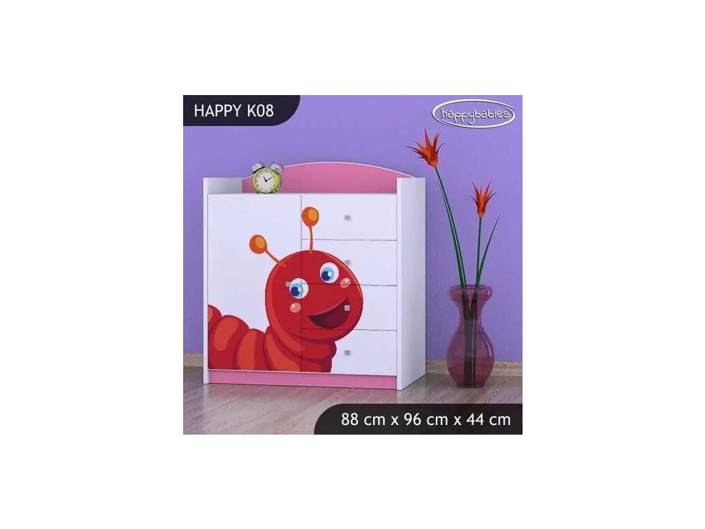 Dětské komody patří k základní výbavě každého pokojíčku. Komody jsou velmi praktické a můžeme je použít jak na oblečení pro děti, tak na hračky nebo knížky. Materiál: lamino 18 mm Barva: růžová, bílá, kaštan wenge, kalvados, buk, hruška, zelená, modrá, oranžová Rozměr: 88 cm x 96 cm x 44 cm Ve stejném motivu si můžete zakoupit také skříň, regál, knihovnu, psací stůl, noční stolek, box na hračky nebo poličku.Buďte první, kdo napíše příspěvek k této položce.