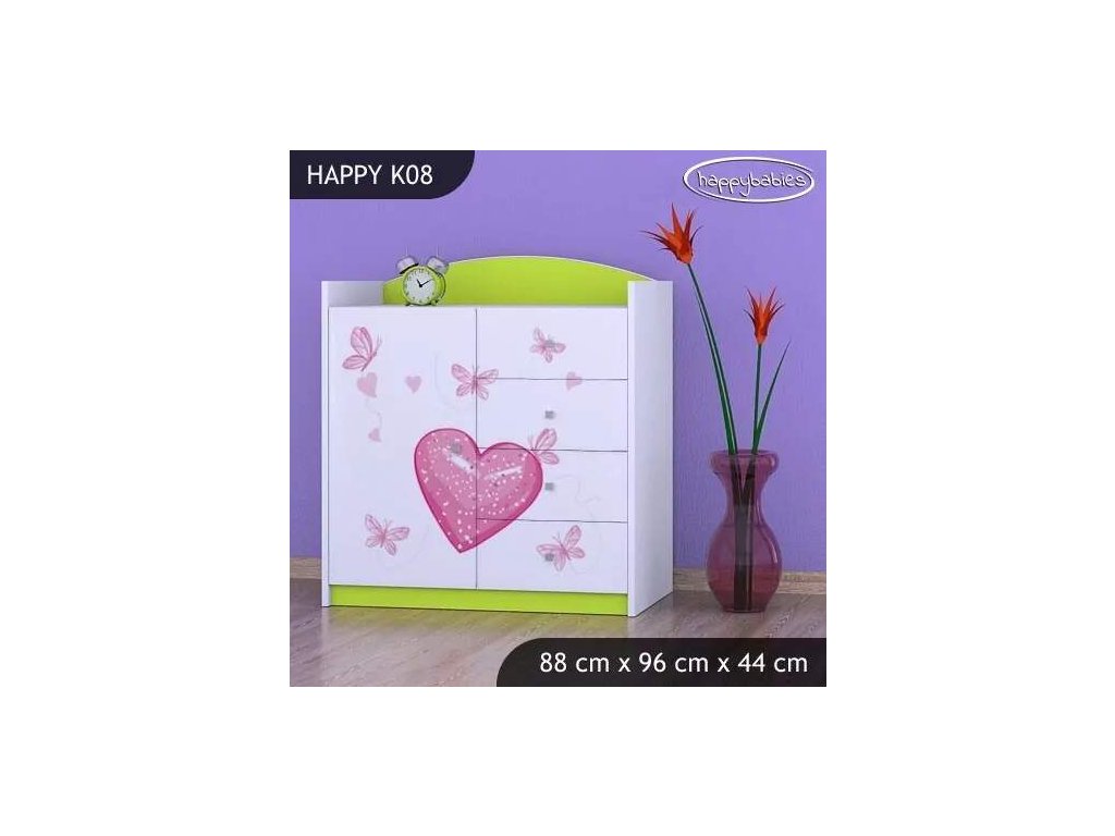 Dětské komody patří k základní výbavě každého pokojíčku. Komody jsou velmi praktické a můžeme je použít jak na oblečení pro děti, tak na hračky nebo knížky. Materiál: lamino 18 mm Barva: růžová, bílá, kaštan wenge, kalvados, buk, hruška, zelená, modrá, oranžová Rozměr: 88 cm x 96 cm x 44 cm Ve stejném motivu si můžete zakoupit také skříň, regál, knihovnu, psací stůl, noční stolek, box na hračky nebo poličku.Buďte první, kdo napíše příspěvek k této položce.
