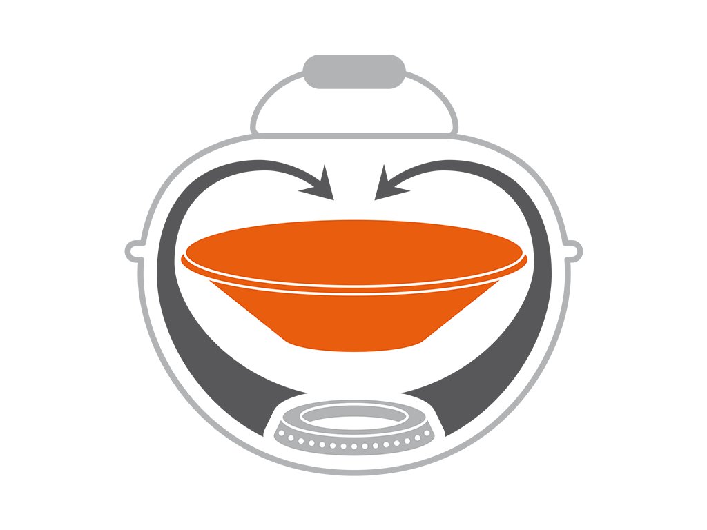 Srdcem systému EASY FLIP je aromatizační trychtýř umístěný mezi grilovací mřížku a kruhový hořák. Při nastavení pro nepřímé grilování svádí odkapávající šťávy do nádobky zavěšené pod grilem. Díky teplotě také zajišťuje jejich částečné odpaření, což dodává samotnému jídlu i okolí to pravé aroma. Pro přímé grilování stačí obrátit aromatizační trychtýř o 180°, tím se veškerý žár soustředí do horké zóny uprostřed mřížky a dovoluje opravdu zprudka orestovat steak (při teplotách přes 450°C v horké zóně)