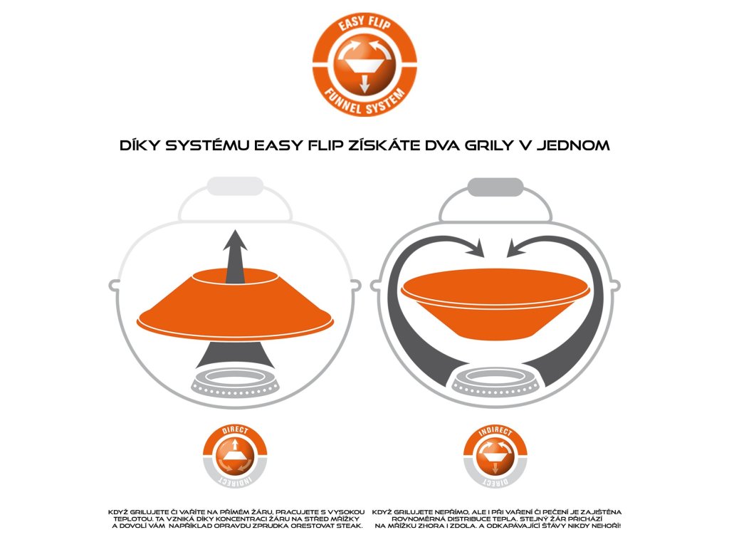 • s originálním systémem EASY FLIP umožňujícím přímé i nepřímé grilování