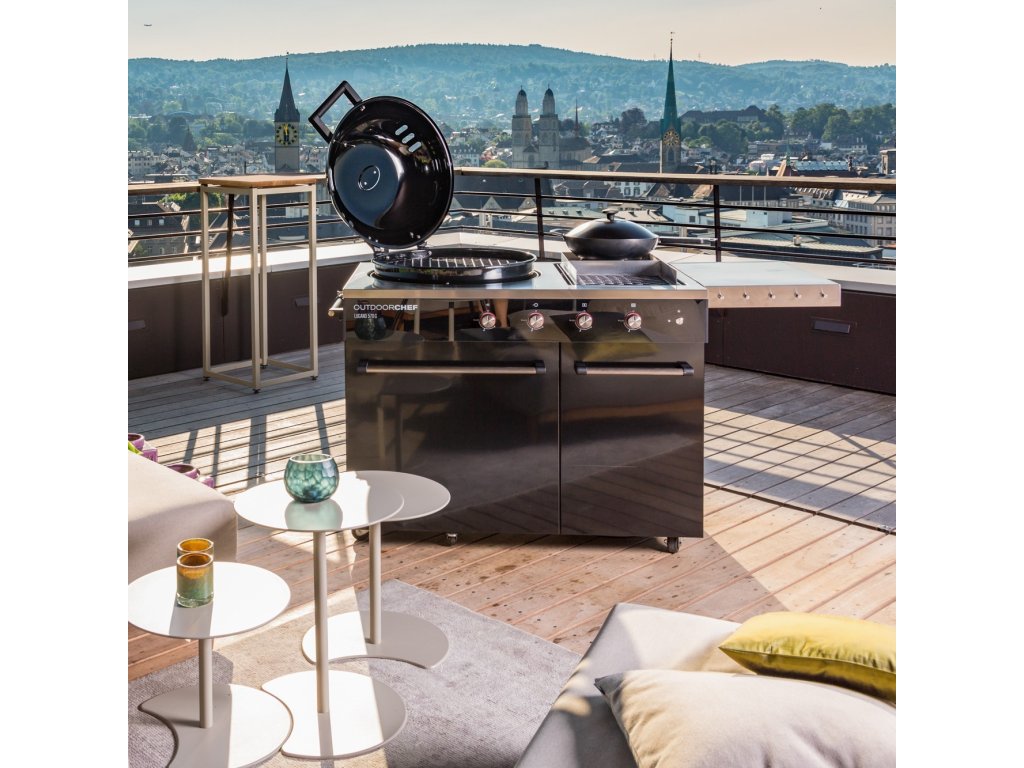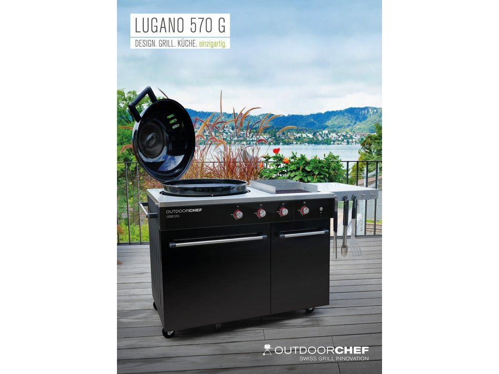LUGANO 570 G je elegantní model grilu, který v sobě spojuje dva nezávislé grily: klasický kotlový OUTDOORCHEF a „Steakhouse“ gril pro přímé grilování.