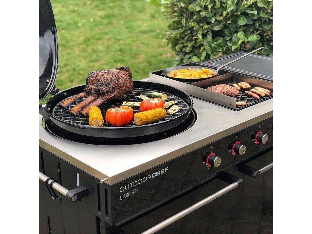 LUGANO 570 G je výjimečný pomocník při různých způsobech grilování, ale nejen to. V kombinaci s volitelným příslušenstvím se z něj stane všestranná zahradní kuchyně. Na Vašich grilovacích akcích tak všechny oslníte kromě steaků, burgerů a křídel například také skvělou pizzou, asijským wokem, gratinovanou zeleninou, ale klidně i muffiny či ovocným koláčem. Možností a kuchařských technik, které nabízí LUGANO 570 G je nepřeberné množství.