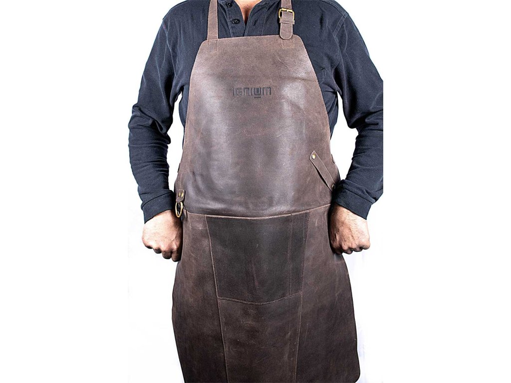 Kožená grilovací zástěra IGNIUM v hnědé barvě