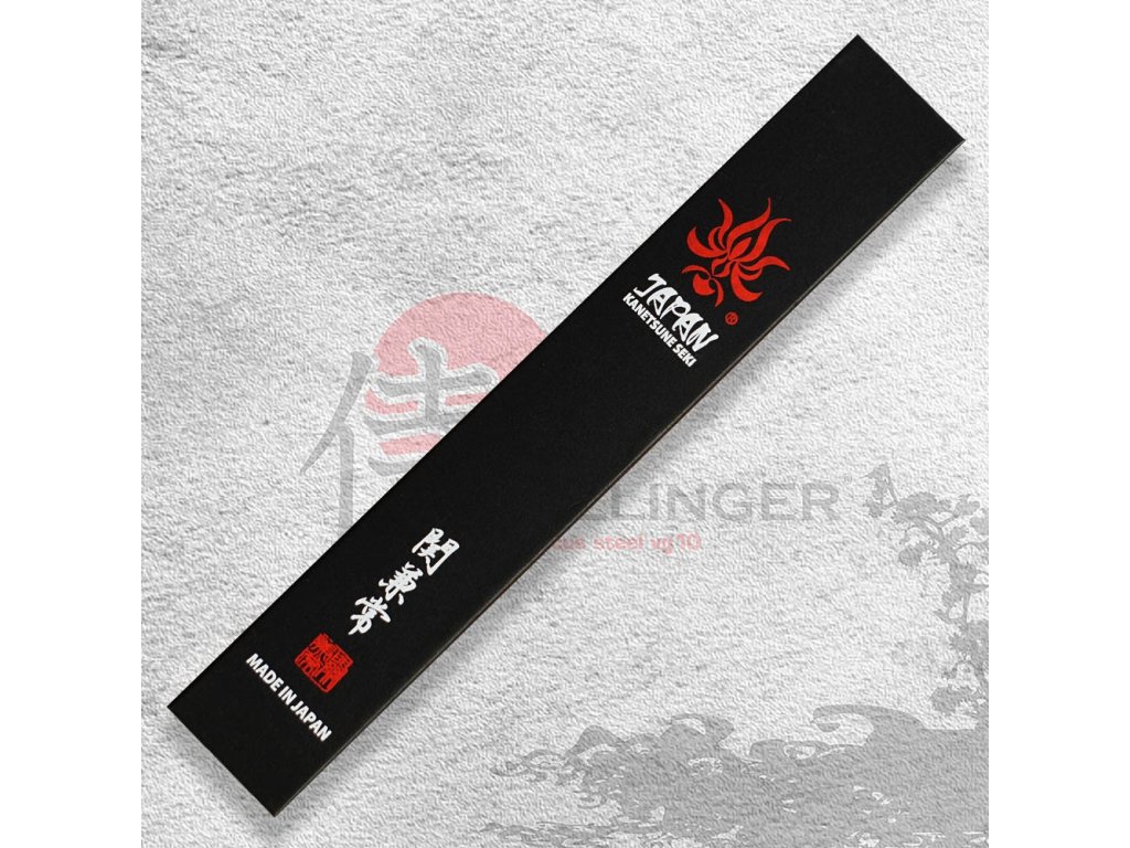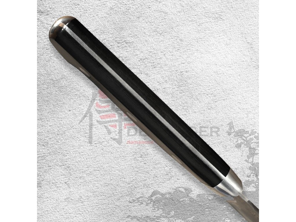 Každý kus je ručně broušený přímo v japonském Seki City, tradičním centru nožířského řemesla. Nůž má západní styl rukojeti z černého PLYWOODU, upevněnou třemi nýty – pro maximální stabilitu, bezpečnost a pohodlný úchop.