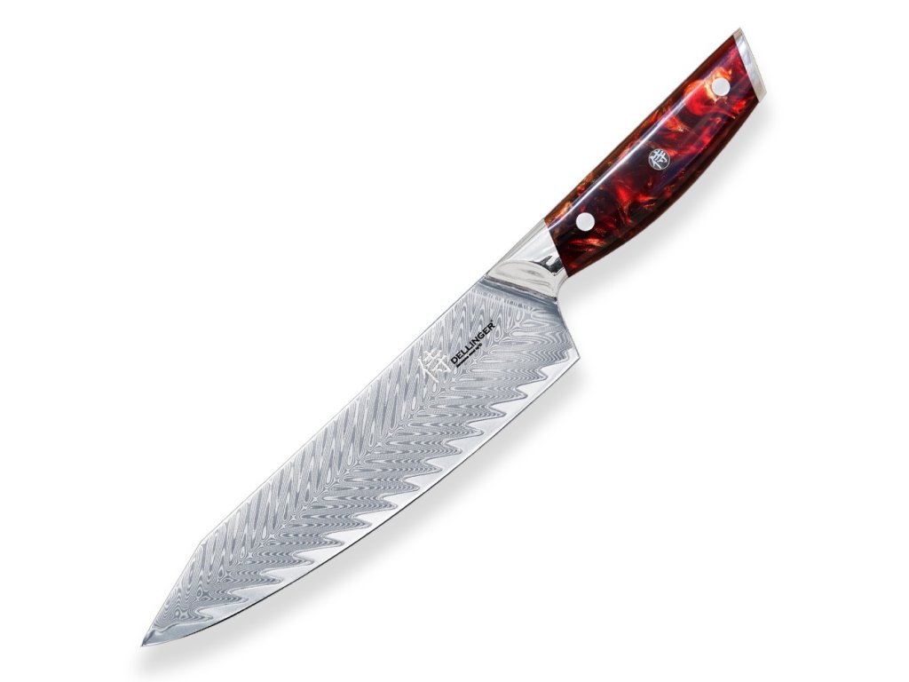 Japonský kuchařský nůž Red Chef Kiritsuke z řady Dellinger Resin Future series je spojením elegance, výkonu a všestrannosti. Jeho dlouhá čepel s ostrým hrotem na konci je ideální pro širokou škálu úkolů v kuchyni, od porcování masa po krájení ryb a přípravu sašimi.