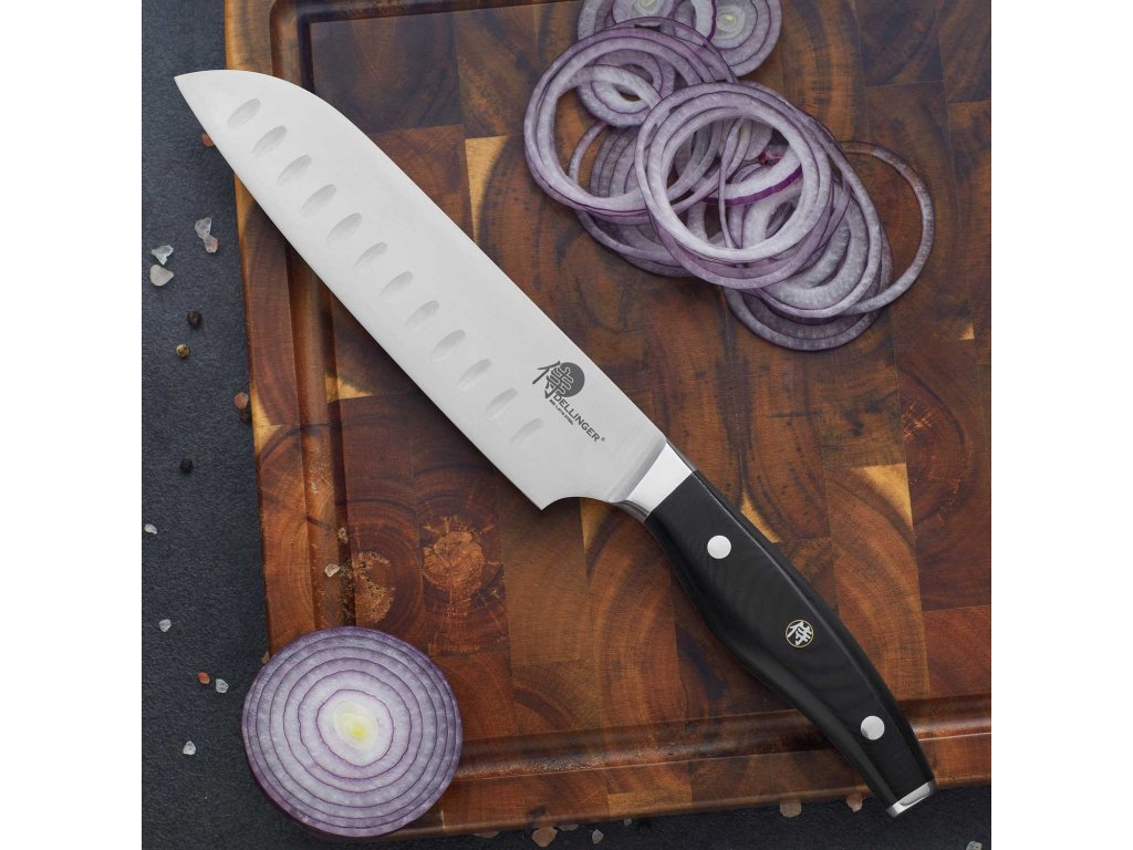 Nůž Santoku je symbolem všestrannosti a dokonalého zpracování, pocházející z Japonska. Jeho unikátní design a široká čepel umožňují efektivní manipulaci s různými druhy potravin, což z něj činí nepostradatelný nástroj v kuchyni.