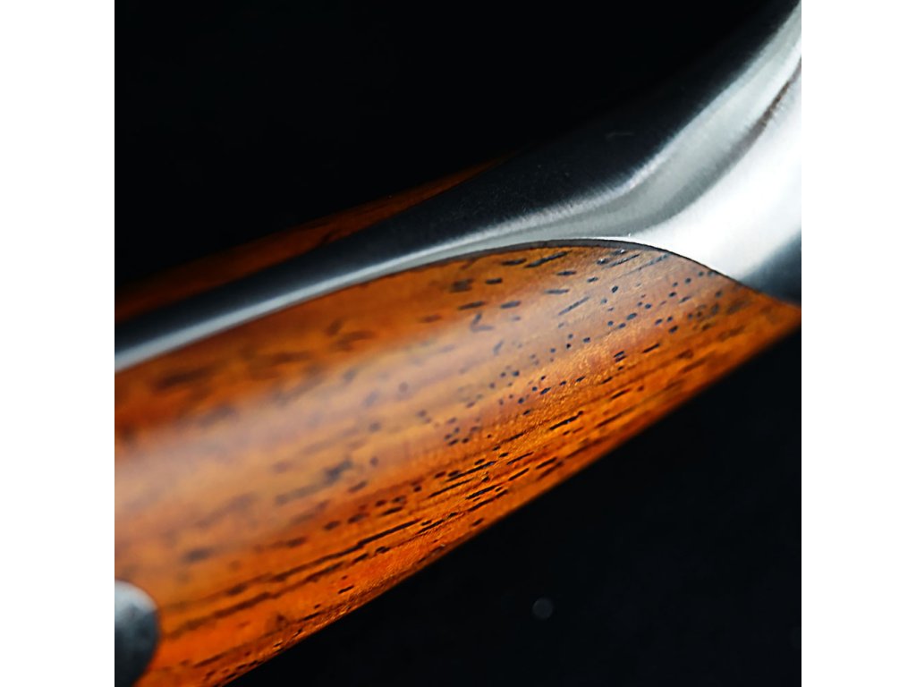 Ergonomická rukojeť ve western stylu je vyrobena z pravého rosewoodu, jehož teplá kresba a vysoká odolnost z něj činí oblíbený materiál mezi šéfkuchaři i sběrateli. Tvarování skvěle padne do ruky a díky ozdobnému nýtu působí elegantně i pevně zároveň. Práce s tímto nožem je nejen pohodlná, ale i stylová.