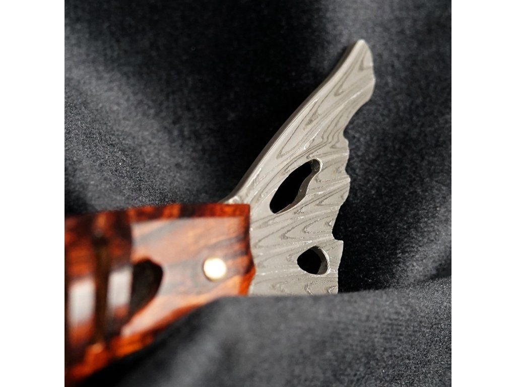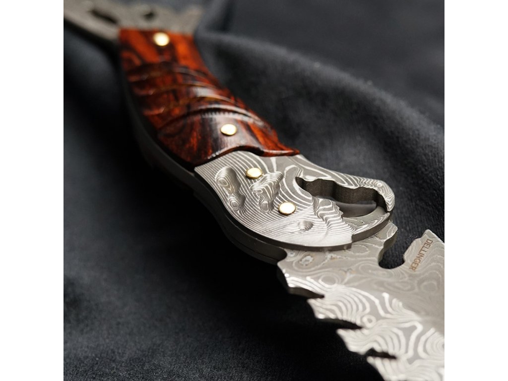 Exklusivní, extravagantní a neotřelý lovecký nůž, který má čepel ze 110 vrstev japonské oceli VG-10. Tato výjimečná ocel má dlouhotrvající ostrost při tvrdosti okolo R61 +/- 1 Rockwella. Nůž Dellinger FISKE Damascus VG-10 se může stát rodinným pokladem, který přežije i vaše vnoučata. Nože jsou vyráběny tradičním způsobem, což zaručuje mimořádnou pevnost čepele a odolnost vůči otupení. Každý nůž je ručně broušený a při vysoké tvrdosti dosahuje mimořádné až extrémní ostrosti.