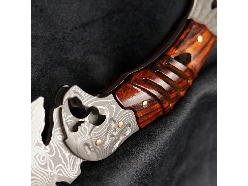 Rukojeť je vyrobena z velmi tvrdého dřeva Desert Iron Wood. Vždy je pečlivě ručně leštěná, ergonomicky tvarovaná a navržena pro vynikající ruční ovládání. Toto dřevo pochází z druhu, který pochází z rozsáhlých pouští v USA. Obsah minerálů v pouštní půdě dodává dřevu jinou a odlišnou barvu. Základní barva dřeva má tendenci mít rozsah od světlého medu po jemný oranžový nádech. Toto dřevo je těžší než voda a díky velmi náročné opracovatelnosti je možné ho naleznout pouze na rukojetích nožů, nebo velmi drahých a jedinečných sochařských dílech. Přední část u nerezového bolsteru je doplněna fosilií mamutího zubu.