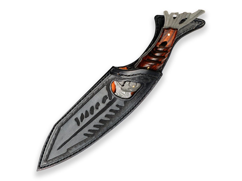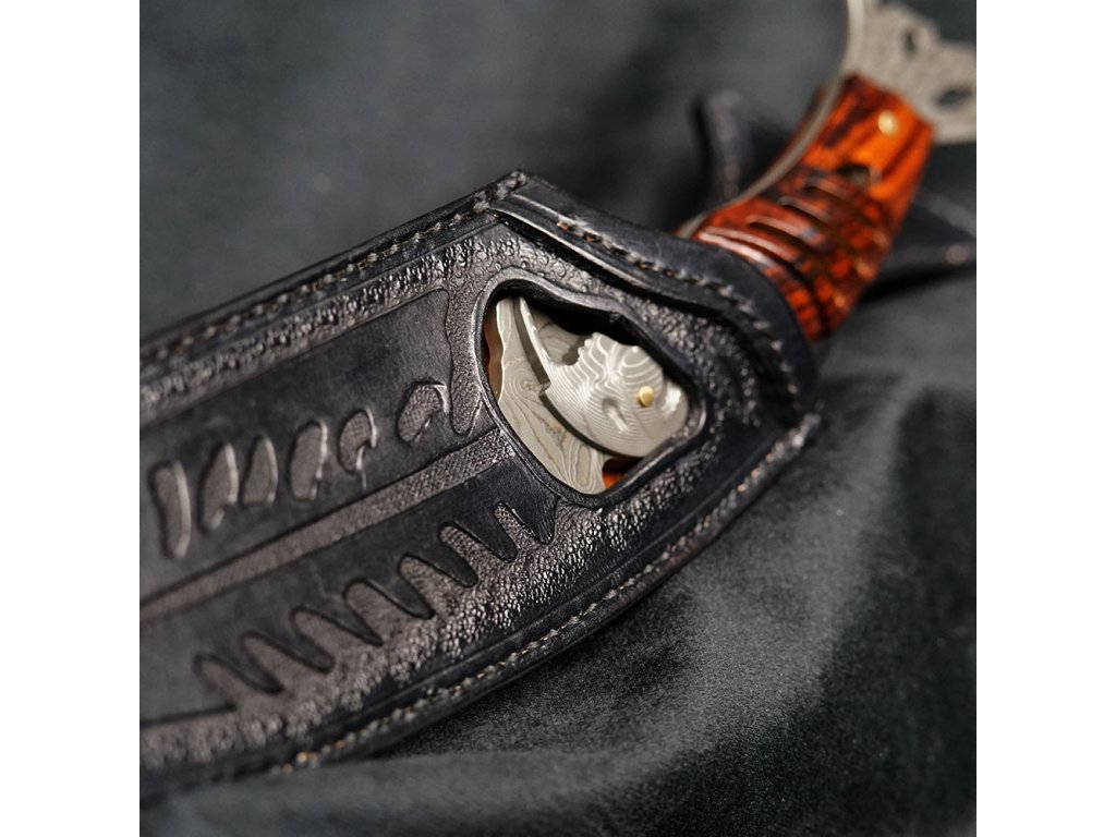 Upozornění: Každý nůž je vyroben z přírodních materiálů. Každý kus oceli je originální a nenapodobitelný, proto Váš nůž nemusí vypadat přesně tak jak na fotografii. Nůž, který obdržíte, bude stejně kvalitní a detailně opracovaný, ale může se mírně lišit.