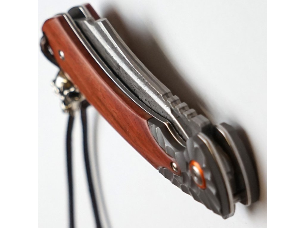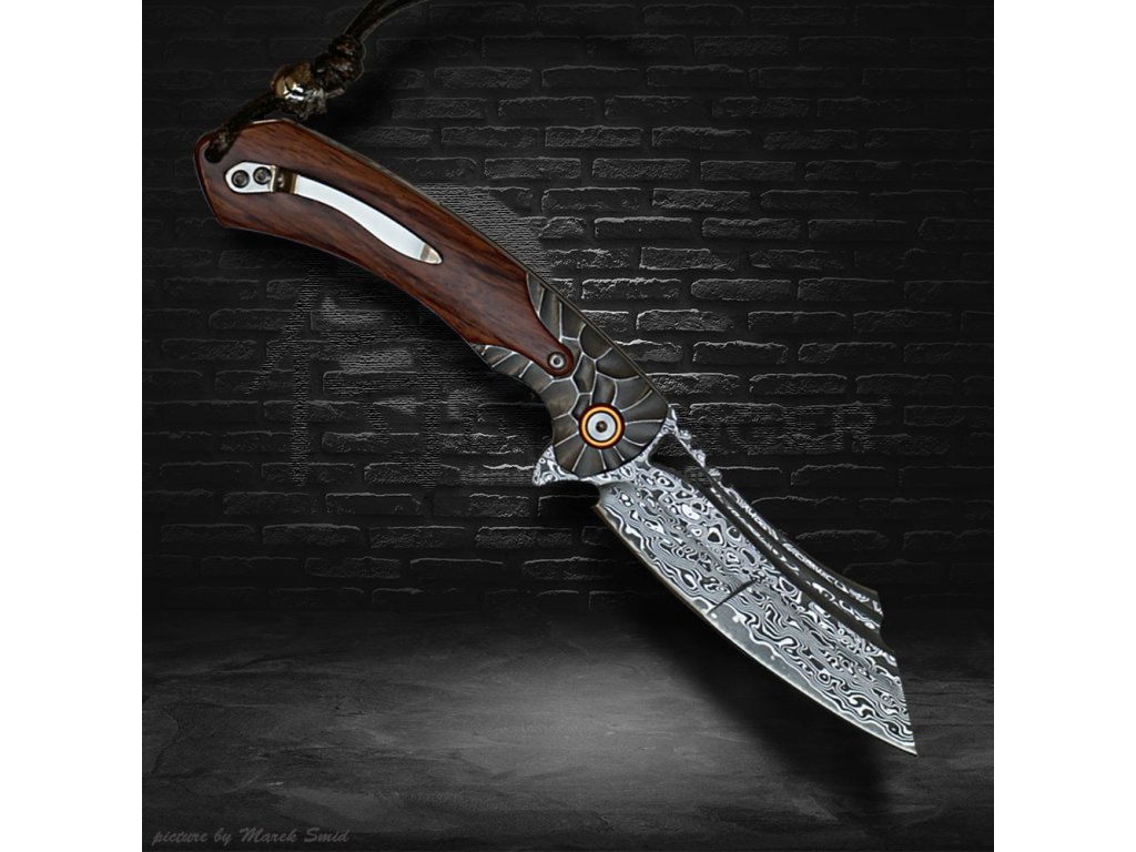 Dellinger Rock VG-10 je elegantní kapesní nůž, navržený pro veškerou práci v lese či v otevřené přírodě. Jeho ostří tvaru TANTO o délce 90 mm z exkluzivní nerezové oceli VG-10 dosahuje vysoké tvrdosti kolem 61 HRC, což zaručuje vysokou houževnatost a odolnost vůči opotřebení. Nůž disponuje střenkami ze dřeva palisandru (Sisso wood) a masivním kováním z nerezové oceli s kroužkem z titanu, což mu dodává luxusní a originální vzhled.