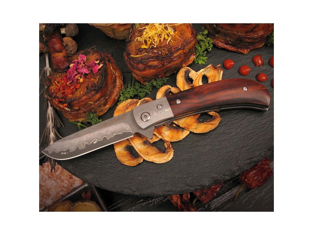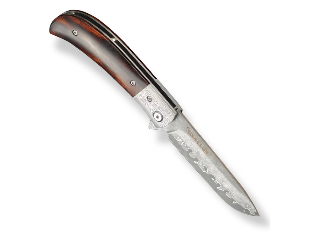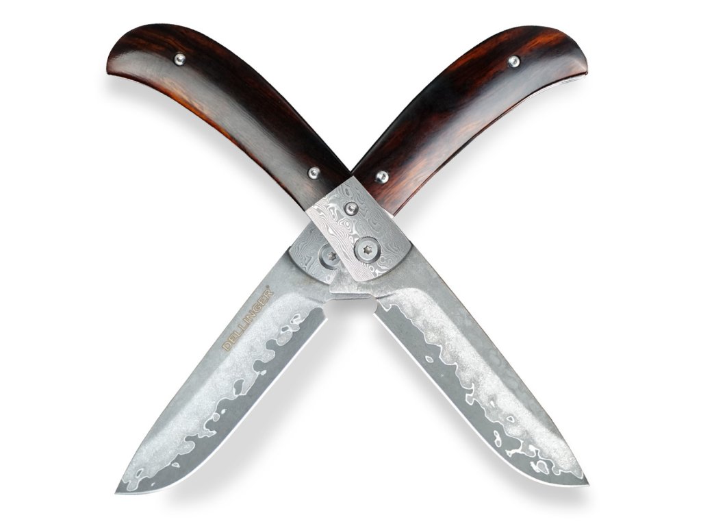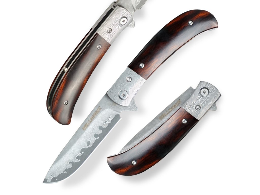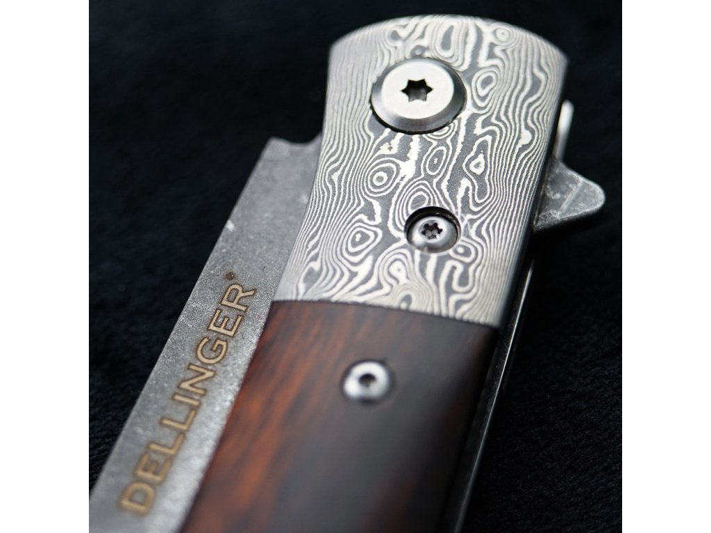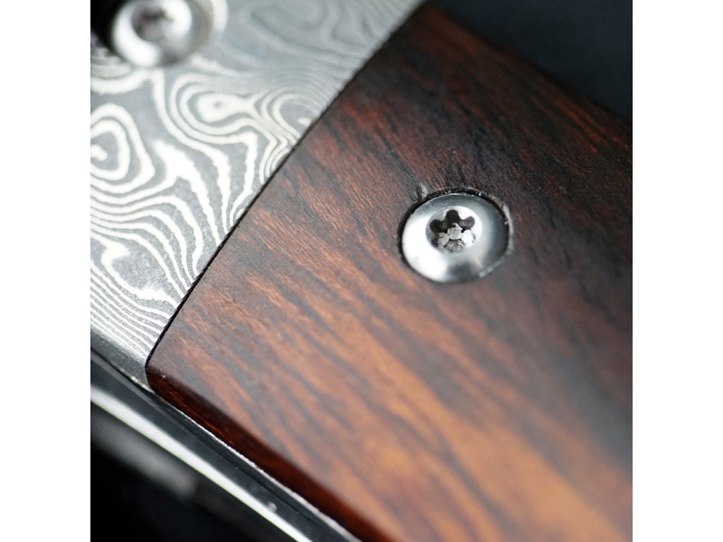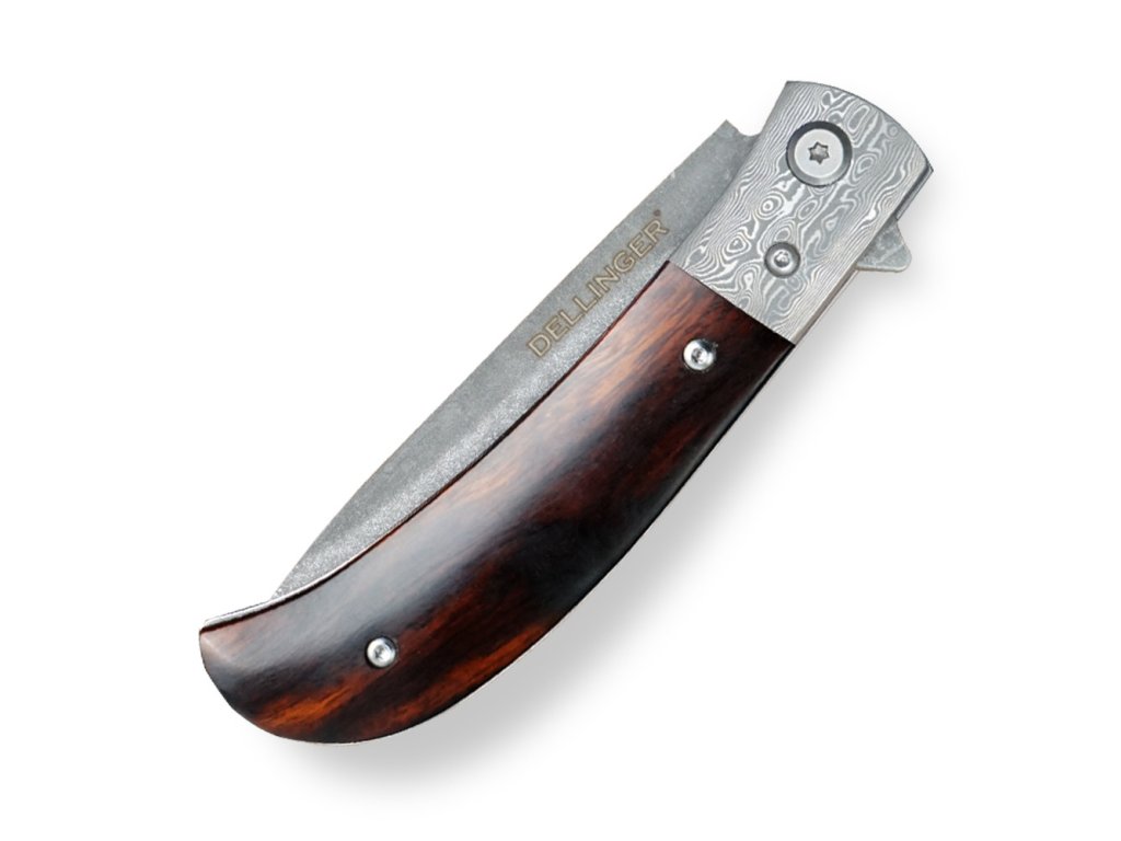 Lovecký zavírací damaškový nůž Dellinger Scorpion Iron-Wood Flipper