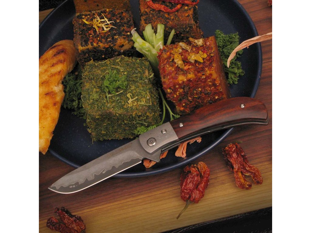 Čepel nože je vyrobena z japonské oceli VG10, která je vysoce odolná vůči korozi. Je obklopena 6 vrstvami nerezové damaškové oceli, což zajišťuje vysokou tvrdost a dlouhotrvající ostrost. Liner-Lock pojistka zabraňuje samovolnému zavření nože, což zvyšuje bezpečnost při používání.