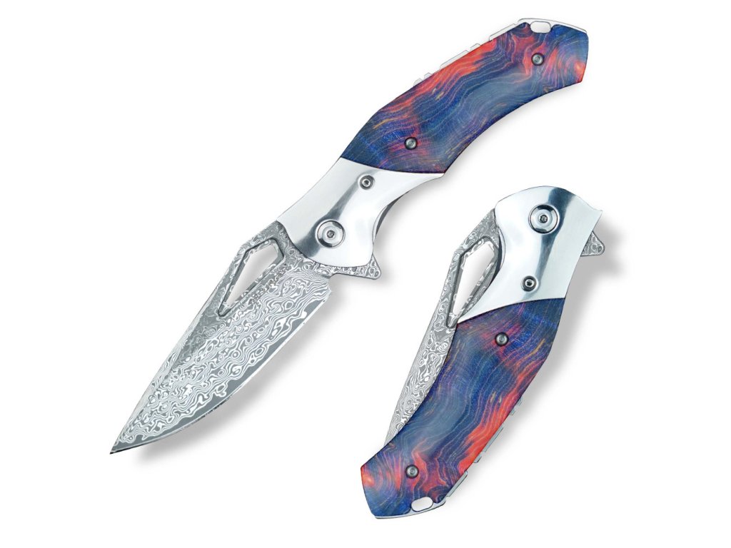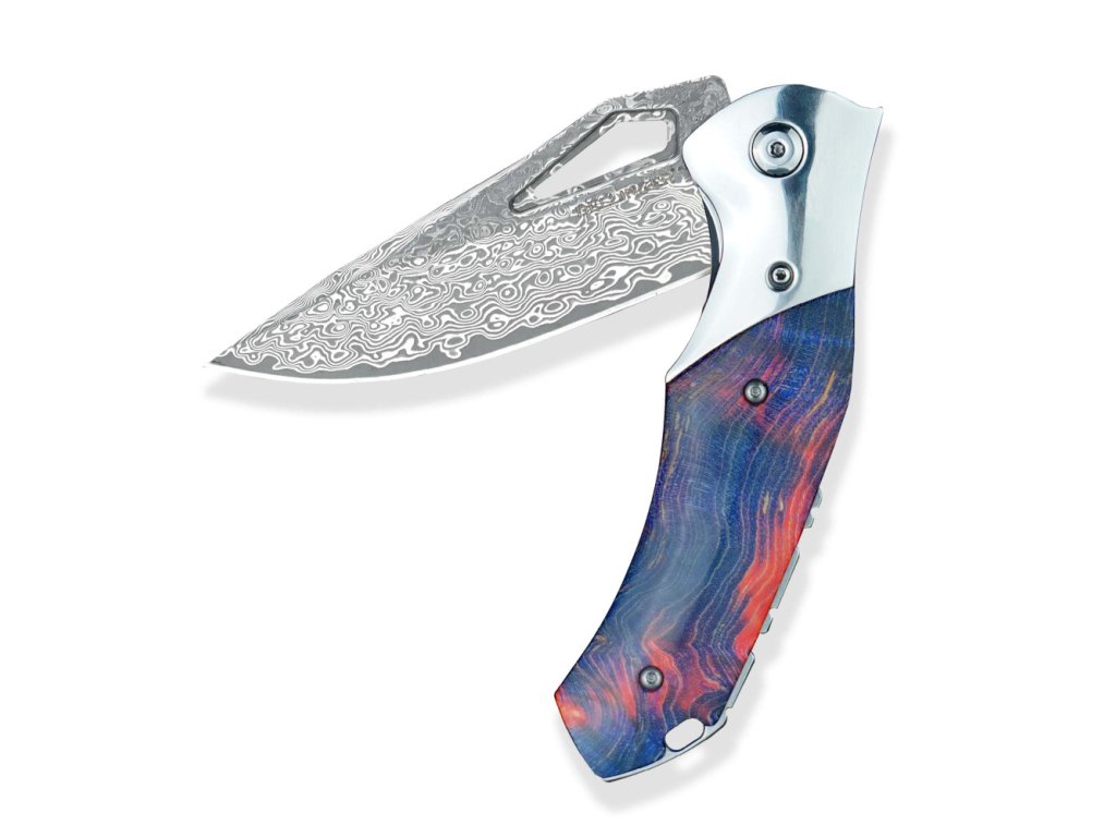 - Střenka: Vyrobena z barveného stabilizovaného dřeva topolu, pečlivě ručně leštěná, ergonomicky tvarovaná a navržena pro vynikající ruční ovládání.