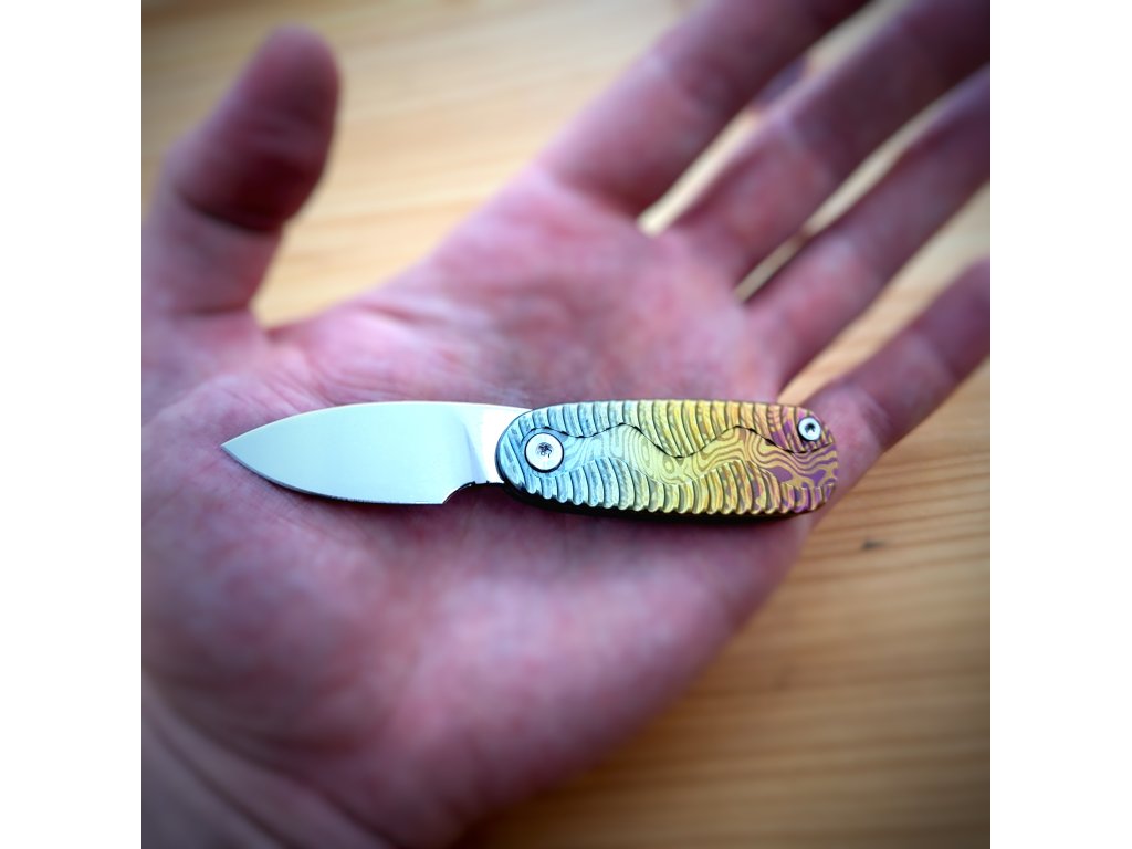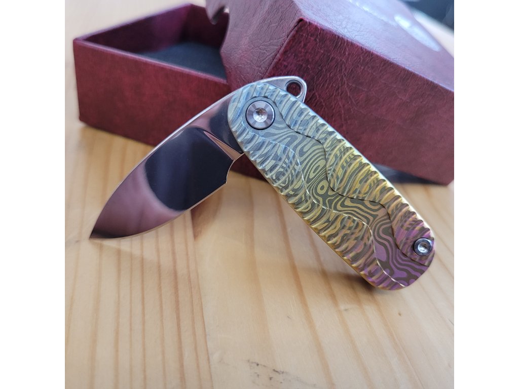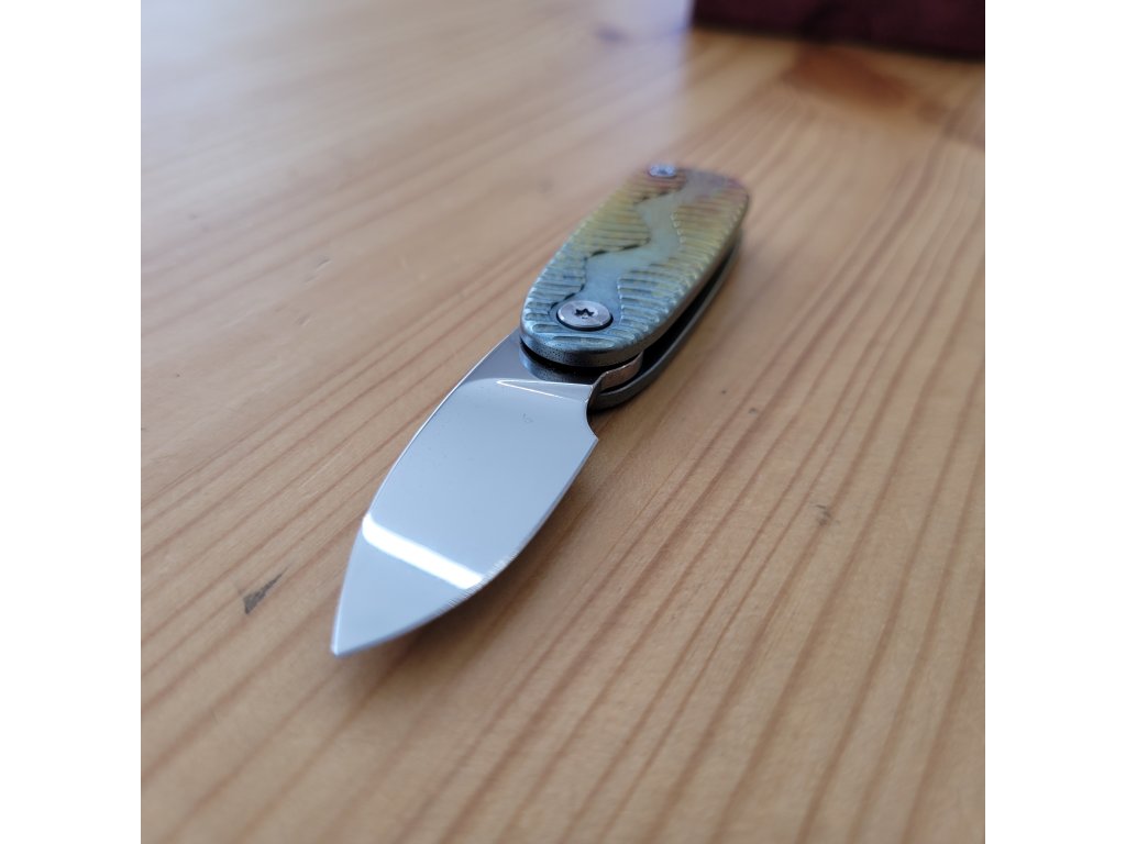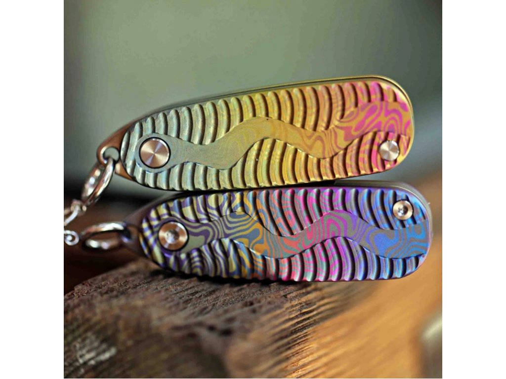 - Titanová střenka: 6AL4V titanium. Kombinace lehkosti a extrémní pevnosti činí tento nožík nejen odolným, ale také pohodlným na nošení. Titanová střenka zaujme svým sofistikovaným vzhledem a zajišťuje dlouhou životnost nožíku.