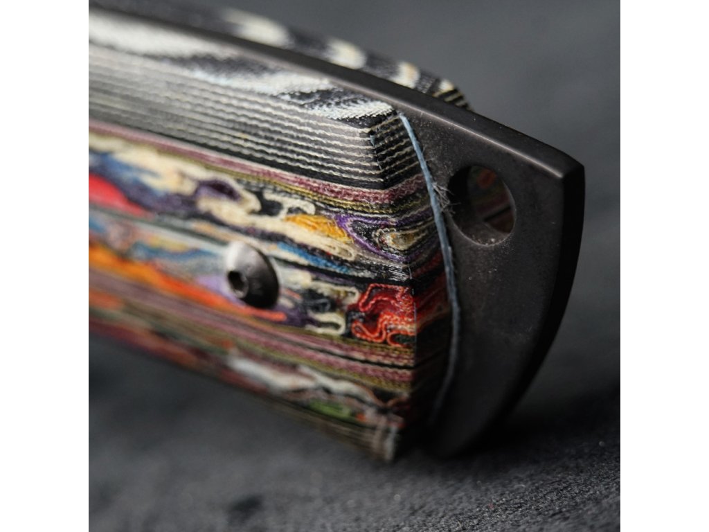 - Rukojeť: Vyrobena z barevné Micarty, je ergonomicky tvarovaná pro pohodlné a bezpečné uchopení, což zvyšuje ovladatelnost i při náročných úkolech.