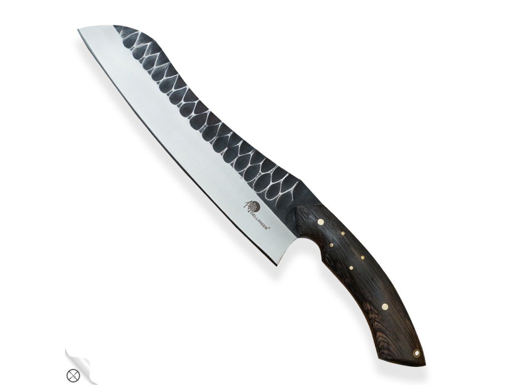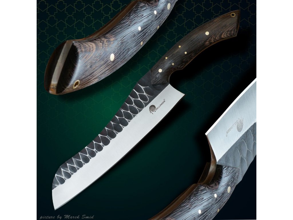 Objevte exkluzivní mačetu Dellinger "D2" Gungnir Wenge Chopper, která vyniká rukojetí z exotického dřeva Wenge. Tento vynikající kuchyňský nůž, ideální pro BBQ a další kulinářské úkoly, je ručně kovaný z vysoce kvalitní oceli D2. Po precizním vytvrzení a žíhání dosahuje tvrdosti Rockwell 60-62 (HRC), což zajišťuje jeho neobyčejnou odolnost. Díky černé práškové oceli (powder steel coating) se povrch nože vyznačuje nejen odolností, ale i moderním vzhledem. S tímto nástrojem se krájení a sekání zeleniny, masa a kostí stane snadnou záležitostí. Vaši návštěvu ohromí nejen jeho výkon, ale i jeho jedinečný design!