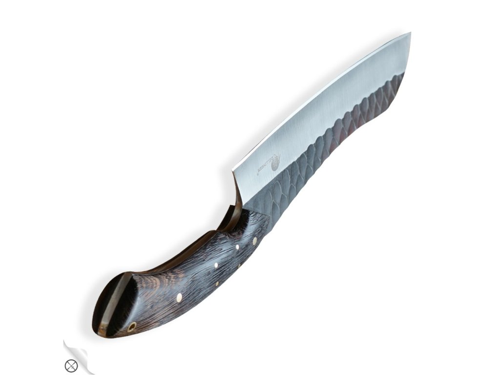 - Rukojeť: Ručně tvarovaná z kartáčovaného exotického dřeva Wenge, která poskytuje nejen estetickou krásu, ale i vynikající pohodlí při používání.