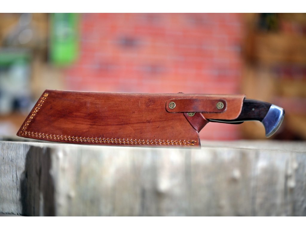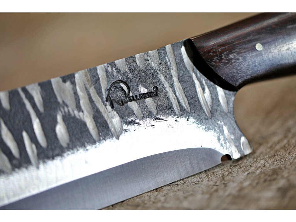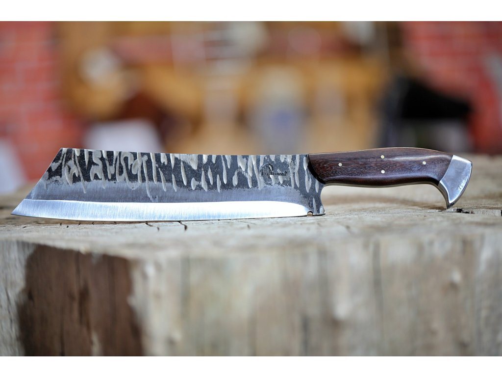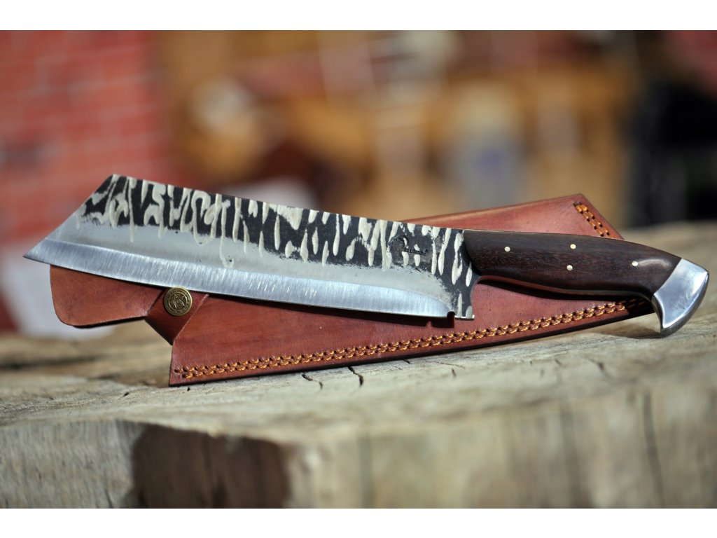 Objevte exkluzivní mačetu Dellinger "D2" IRON Wood Chopper, která se pyšní rukojetí z exotického dřeva Iron-Wood. Tento robustní kuchyňský nůž, ideální pro BBQ a další náročné úkoly, je ručně kovaný z oceli D2. Díky tvrdosti Rockwell 60-62 (HRC) je tento kus oceli extrémně odolný, a jeho ostří vydrží i nejnáročnější použití bez známek poškození. Černá prášková ocel (powder steel coating) dodává noži nejen moderní vzhled, ale i extra ochranu proti opotřebení. Ukažte každé návštěvě, jaký skvost se skrývá ve vaší kuchyni!