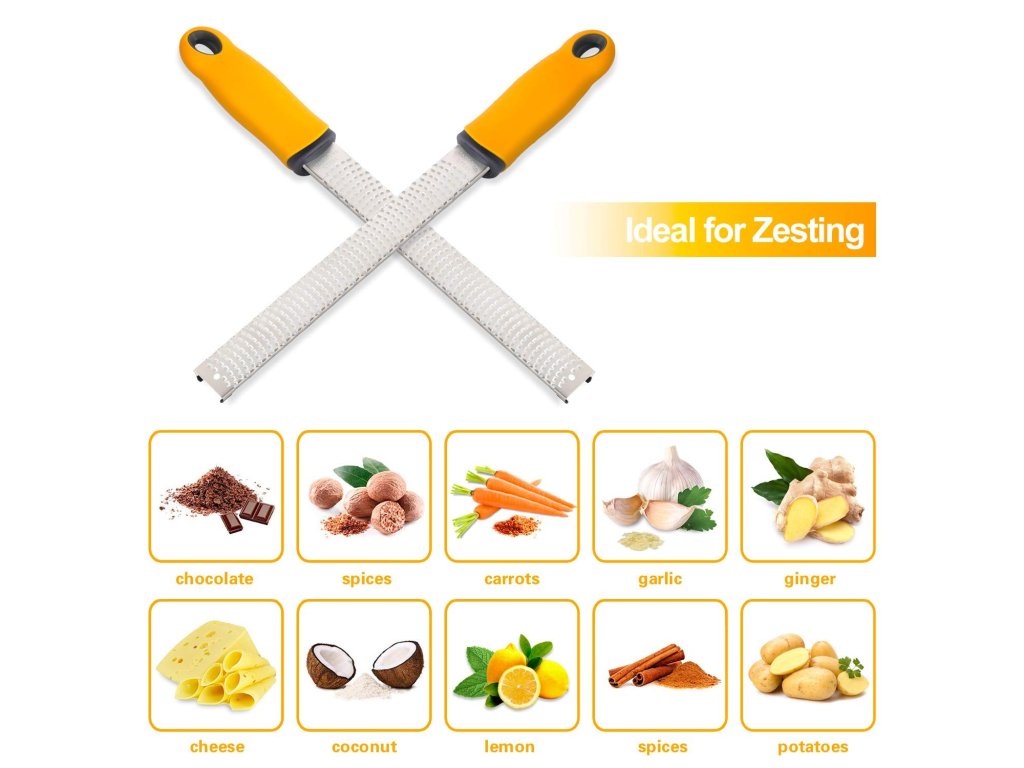 toto ruční struhadlo se tvarem inspirovalo u rašple na opracování dřeva. Velmi rychle se stalo nezbytnou součástí všech profesionálů, cukrářů, ale i domácích kuchařů. Především díky své vynikající ostrosti a jednoduchému používání. Ostří tohoto struhadla vytváří velice jemný výsledný produkt, který vypadá jako malé šikmé nudličky. Naše struhadlo je ideální pro nastrouhání tvrdých sýrů (např. sýru parmezán), tvrdého koření (muškátový oříšek, skořice), kůry citrusových plodů (limetka, pomeranč, citrón) ale i česneku, nebo zázvoru.