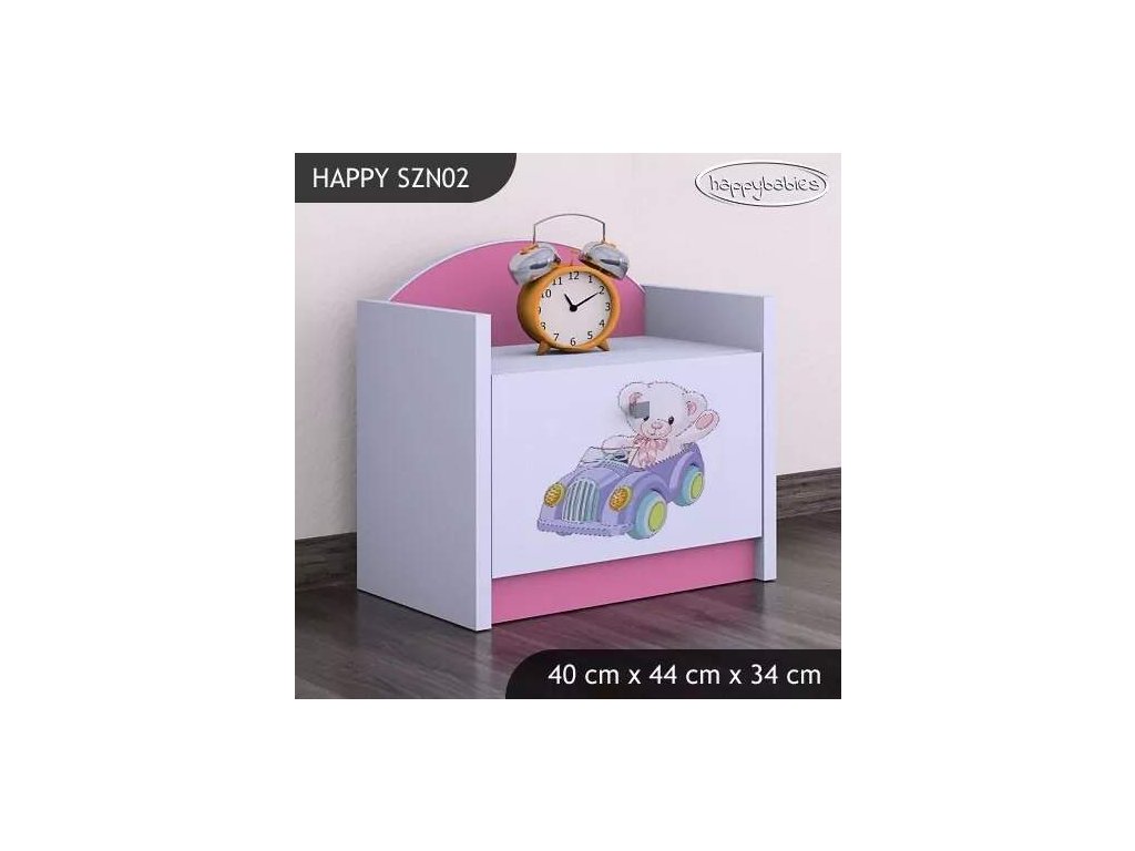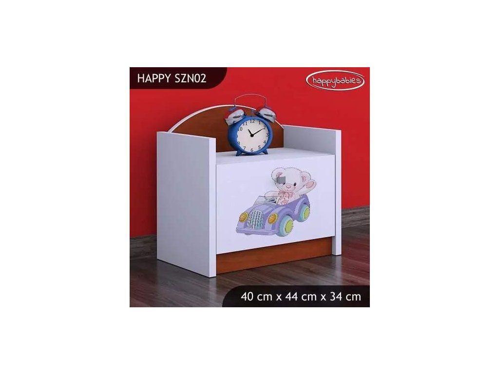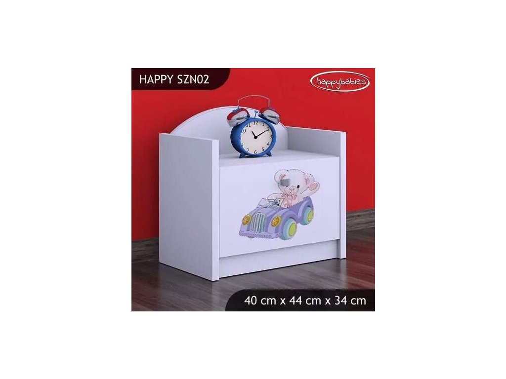 Noční stolek Happy SZN02 - medvídek v autě