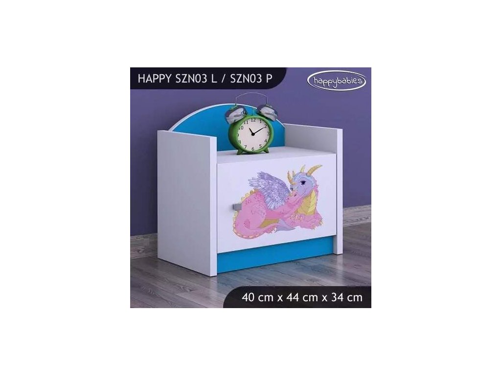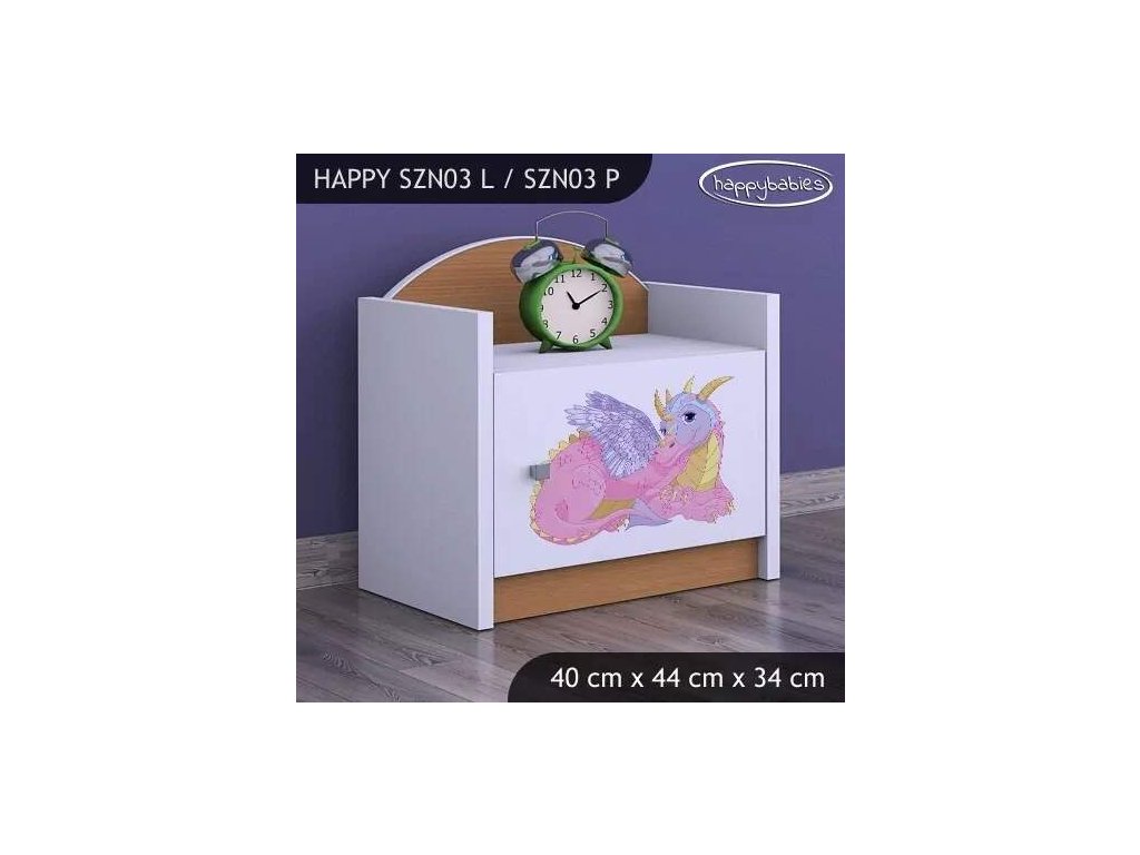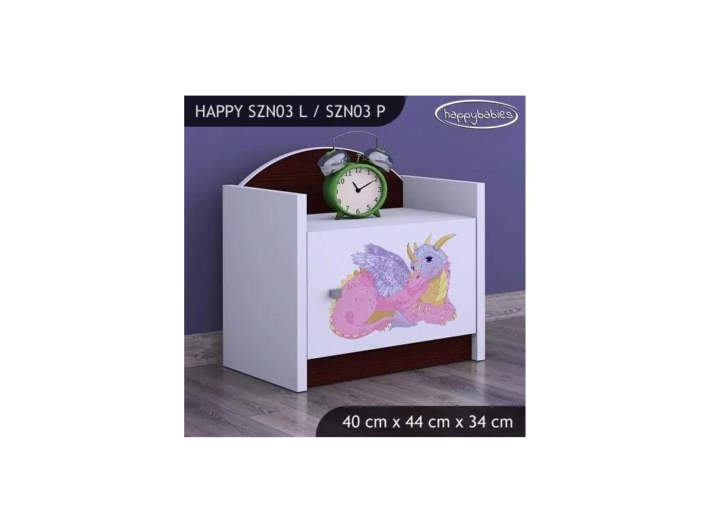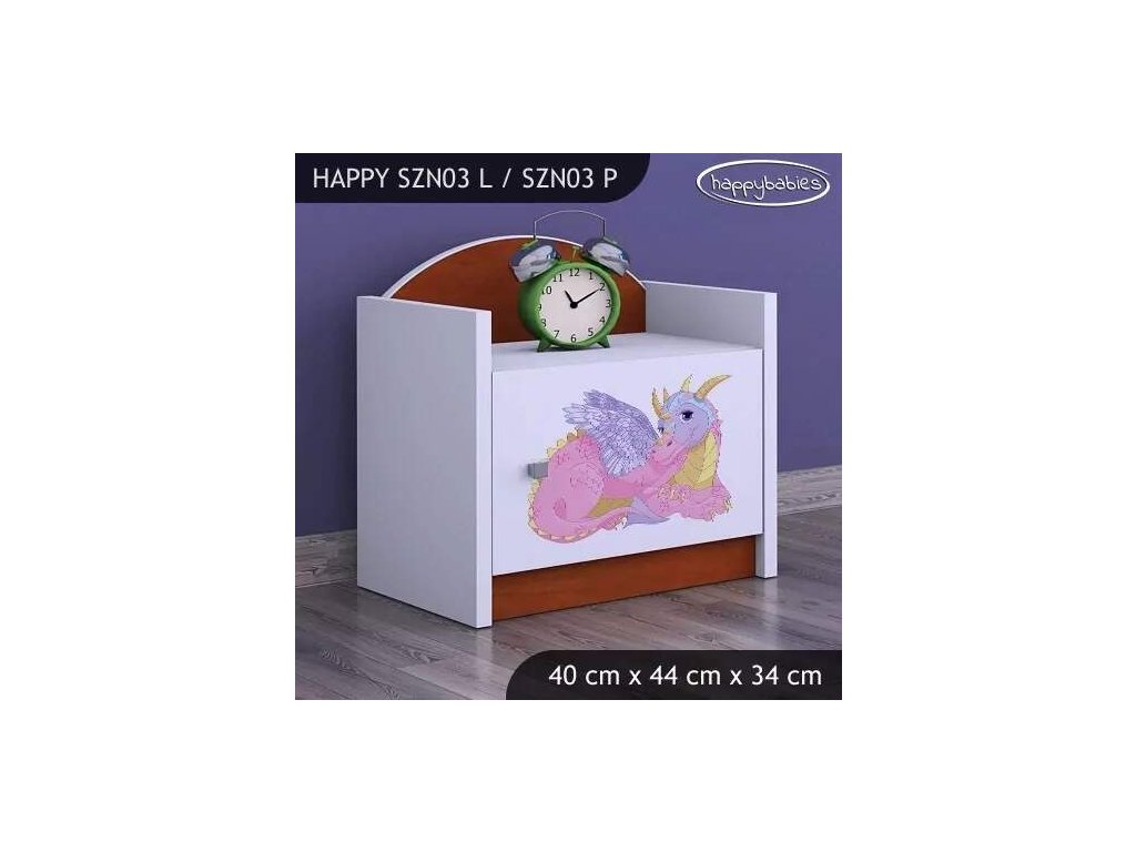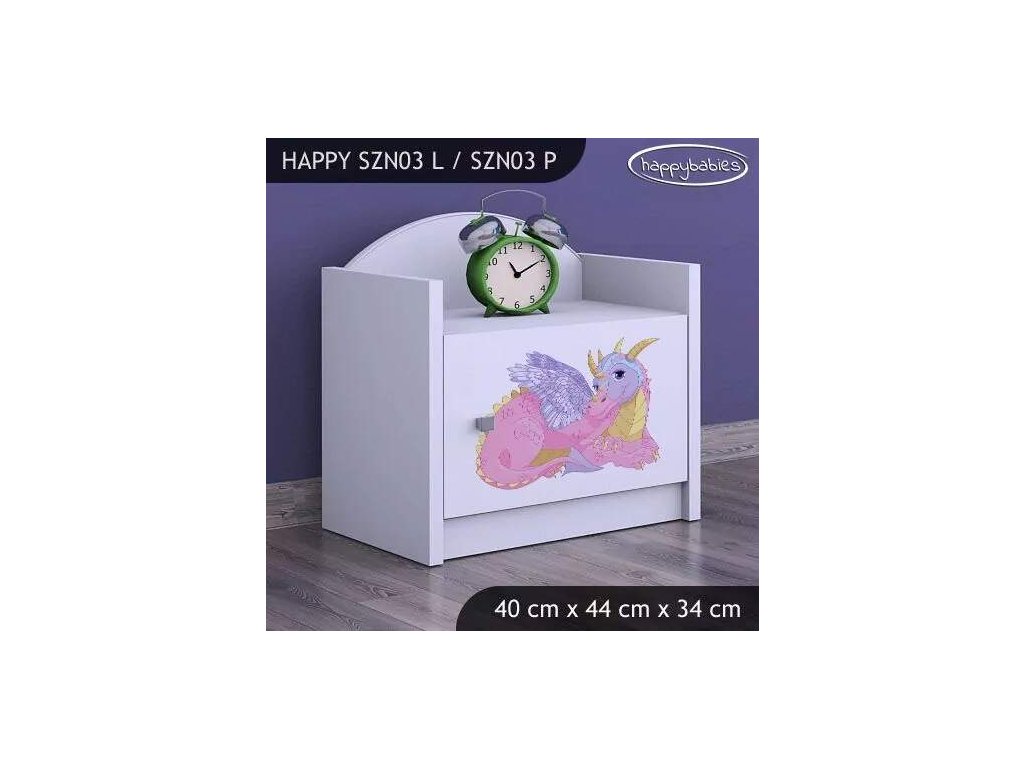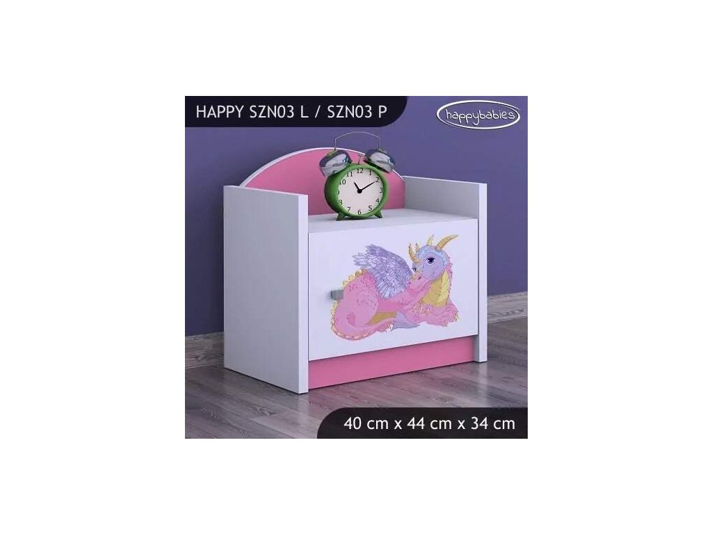 Noční stolek Happy SZN03 - růžový dráček