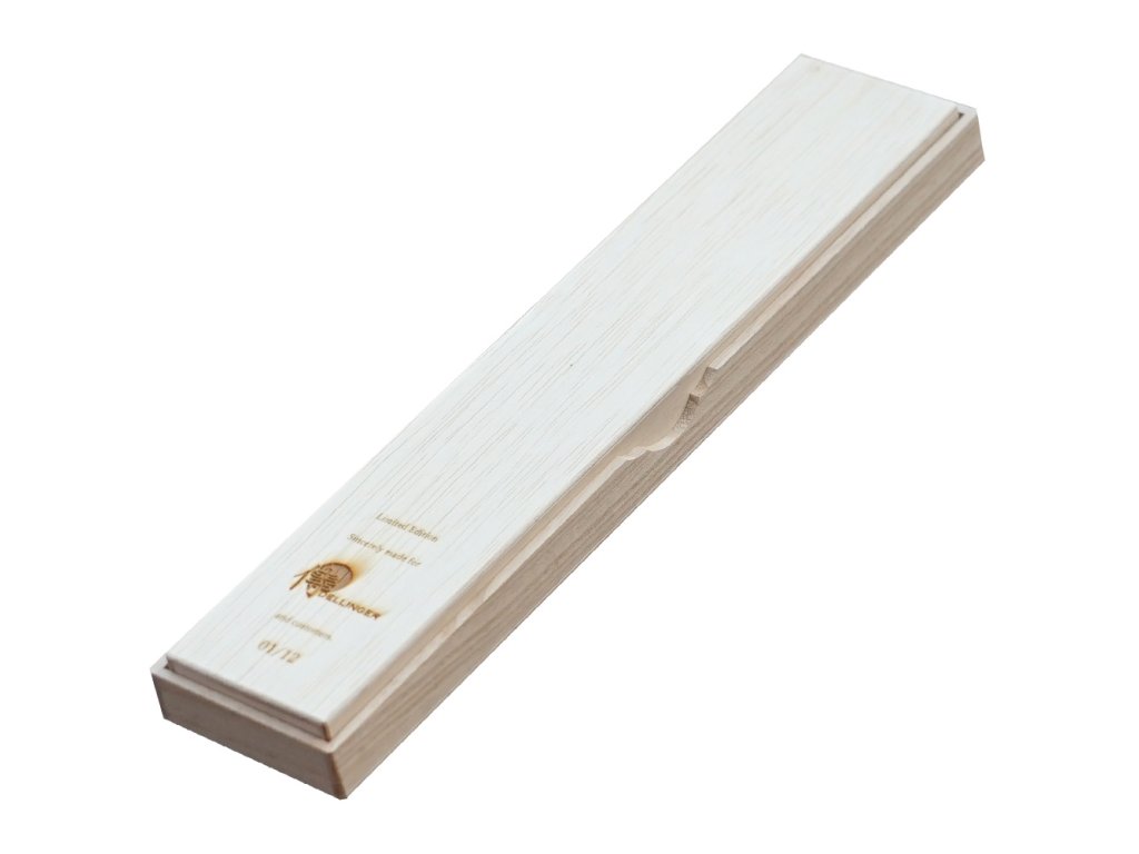 Rukojeť z posvěceného cedrového dřeva přináší jedinečný pocit spojení s historií a přírodou. Každý nůž je díky tomu více než jen výrobkem – je nositelem příběhu, který sahá až k dávným tradicím Japonska a přenáší jejich odkaz do rukou svého nového majitele. Tato limitovaná edice se tak stává oslavou řemeslné dokonalosti, přírodních zdrojů a odolnosti ducha, který se dokáže postavit ztrátám a proměnit je ve smysluplné činy.