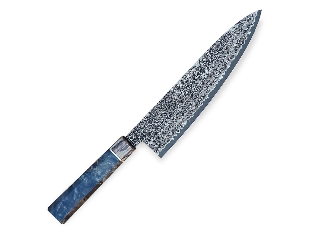 Nůž šéfkuchaře Chef / GYUTO je ideální pro všestranné využití. Díky tomu, že se hřbet nože a ostří zužují do špičky, má ideální tvar pro každý druh krájení. Je vhodný pro porcování masa, krájení ryb, plátkování, čištění masa a ryb, ovoce a zeleniny. Výše položený hrot Vám umožní i kolébkové krájení bylinek nebo ořechů.