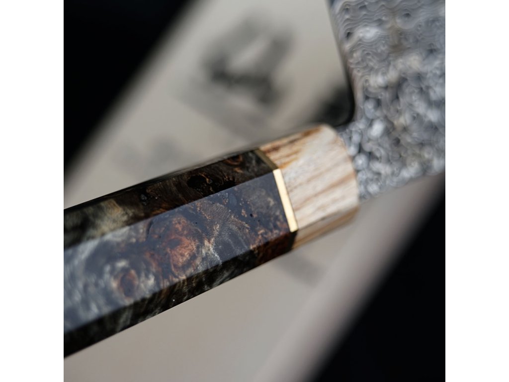 Rukojeť z posvěceného cedrového dřeva přináší jedinečný pocit spojení s historií a přírodou. Každý nůž je díky tomu více než jen výrobkem – je nositelem příběhu, který sahá až k dávným tradicím Japonska a přenáší jejich odkaz do rukou svého nového majitele. Tato limitovaná edice se tak stává oslavou řemeslné dokonalosti, přírodních zdrojů a odolnosti ducha, který se dokáže postavit ztrátám a proměnit je ve smysluplné činy.