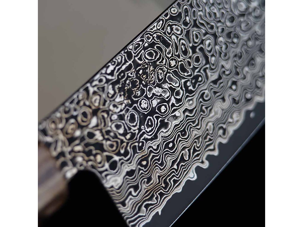 Nůž Gyuto / Chef 200 mm Suncraft Dawn Limited Editition má ostří z japonské práškové oceli SG2, která vyniká svou tvrdostí a schopností udržet ostří nože. Čepel nože je tvořena jádrem z práškové oceli SG2 o tvrdosti 63+/-1 Rockwella, které je vloženo mezi 110 vrstev dvou nerezových ocelí rozdílných tvrdostí, které zajišťují mimořádnou odolnost a houževnatost. Vzor vzniklý propletením vrstev oceli vytváří téměř jedinečný efekt, který Vás naprosto uchvátí. Tento vzor také minimalizuje tření při řezu a zabraňuje přilepení krájeného materiálu k čepeli. Díky citlivé volbě materiálu a precizní finální úpravě (black coating) se čepel snadno udržuje. Velmi dlouho si zachovává ostrost a výborně se hodí k broušení na vodních kamenech.