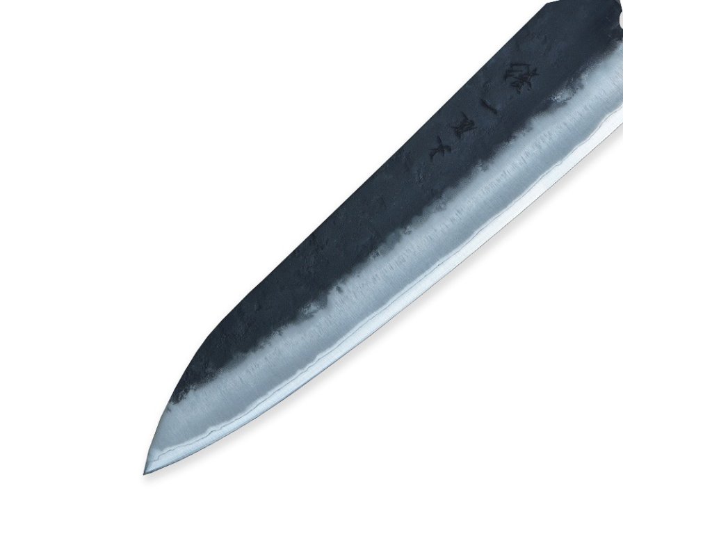 Překrásný všeobecně použitelný nůž Gyuto (Chef) z oceli AOGAMI Super steel s působivým designem a nejvyšší kvalitou. Robustní těžký nůž s působivým designem a nejvyšší kvalitou. Hřbet nože a ostří se zužují do špičky pro všestranné využití jako je krájení, čištění masa, ovoce a zeleniny. Kuchařský nůž je též vhodný ke kolébkovému krájení bylinek, zeleniny a ořechů.