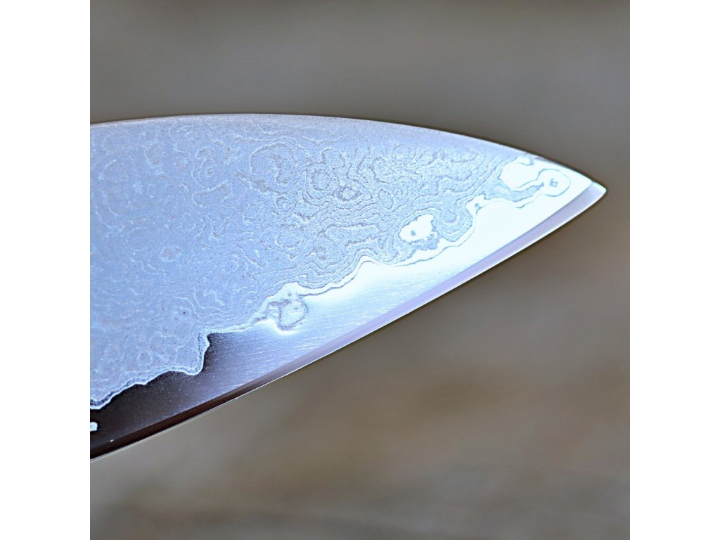 Ostření nože: pro ostří kuchyňského nože z japonské oceli VG-5 doporučujeme použití diamantových a vodních brusných kamenů. Pokud si nejste 100% jisti svými schopnostmi a šikovností, obraťte se na nás. Případně vyhledejte profesionálního brusiče ve Vašem okolí. Škody, které by mohly vzniknout při neodborném broušení jsou nevratné.