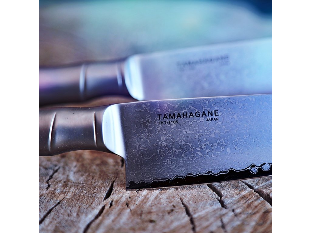 Série nožů Tamahagane VG-5 Bamboo Damascus - Kyoto jsou velmi výrazné a přitom velmi pohodlně padnou do ruky. Každý nůž je jeden po druhém ručně broušen vodními kameny pod úhlem mezi 14-15 stupni. Nože Tamahagane Bamboo se vyznačují se nádhernou povrchovou úpravou s vysokým leskem.