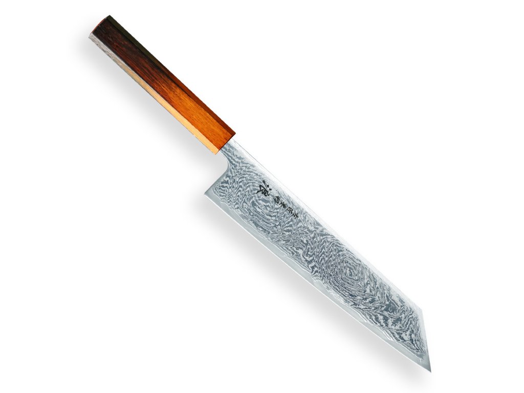 Jedinečný nástroj pro precizní práci v kuchyni! Tento extrémně ostrý nůž Kiritsuke z damascénské oceli je oblíbený pro svou univerzálnost a elegantní design. Je považován za tradiční nůž mistrů sushi a šéfkuchařů, který kombinuje vlastnosti nožů Yanagiba a Usuba do jednoho univerzálního nástroje. Díky asymetrickému tvaru čepele je vhodný pro širokou škálu kuchyňských úkolů, od krájení a plátkování masa a ryb až po práci se zeleninou.