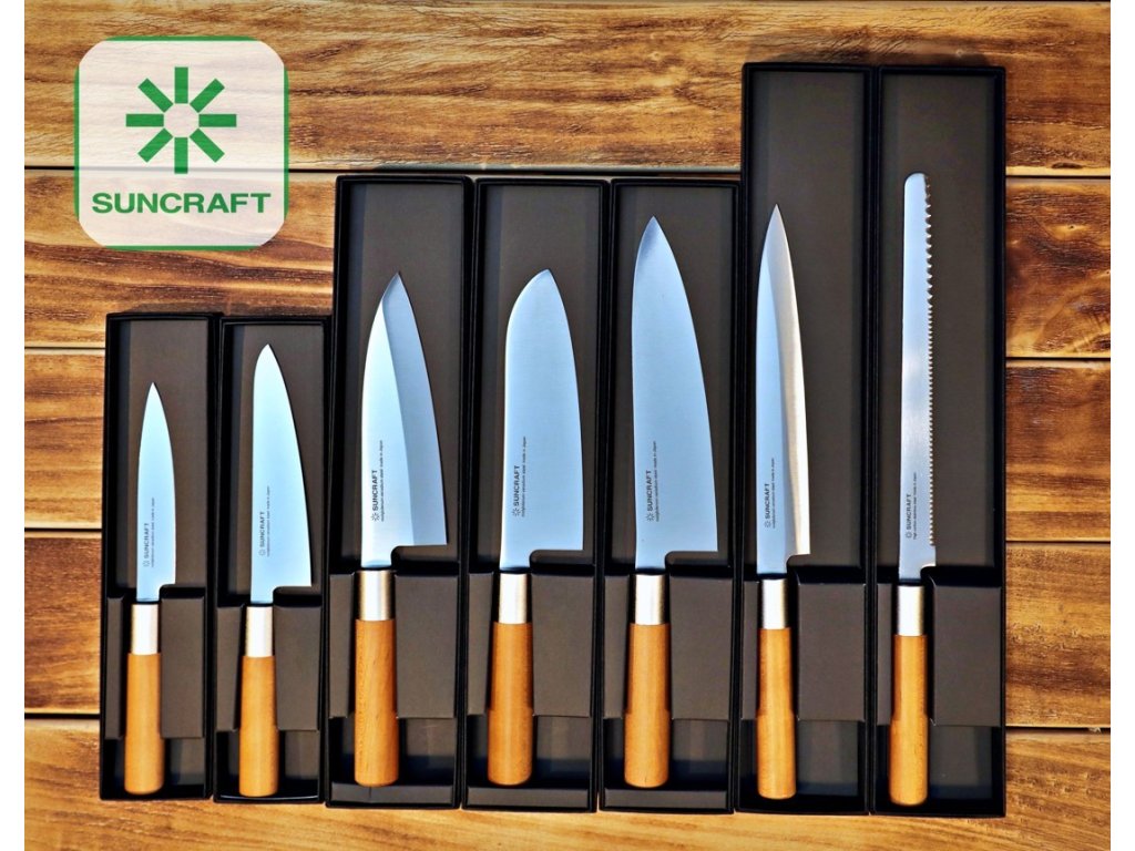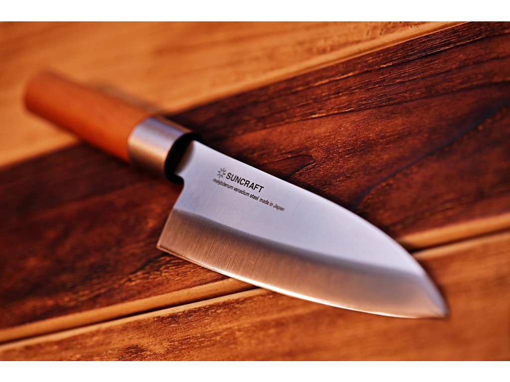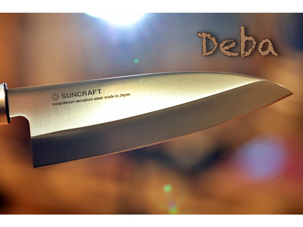 Japonský nůž Deba Suncraft SENZO o délce 165 mm je vynikající nástroj určený především pro práci s rybami a masem. Tento robustní jednostranný nůž je broušený v tradičním japonském stylu, což mu poskytuje vynikající ostrost a efektivitu při vykosťování, tenkém plátkování masa a sekání menších kostí. Je ideální pro přípravu sushi a dalších pokrmů vyžadujících precizní řezání. Čepel z molybdenvanadiové oceli je velmi ostrá, zatímco kulatá rukojeť ze dřeva magnolie zajišťuje pohodlný a stabilní úchop.