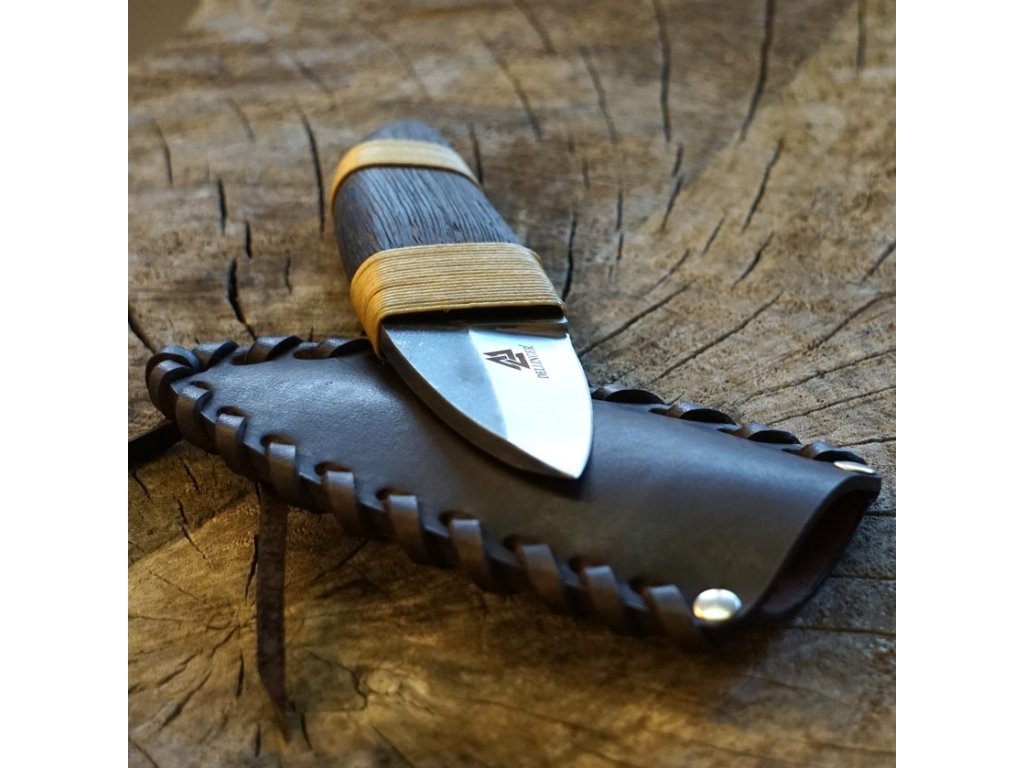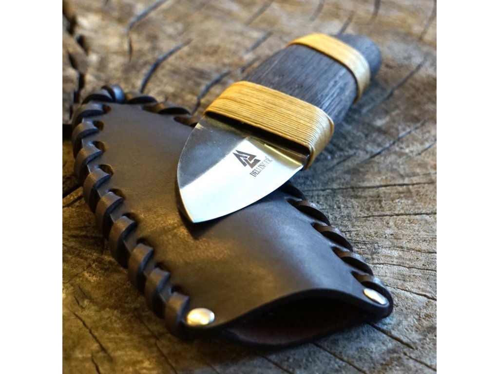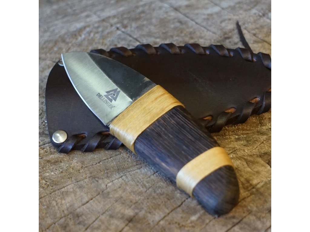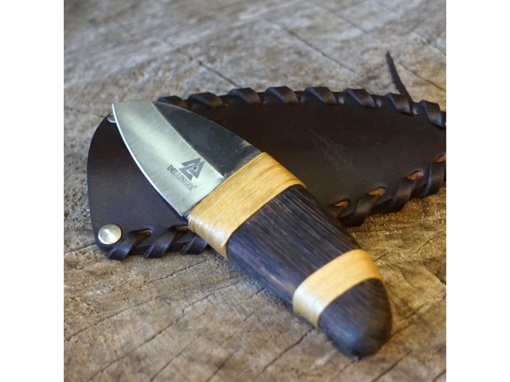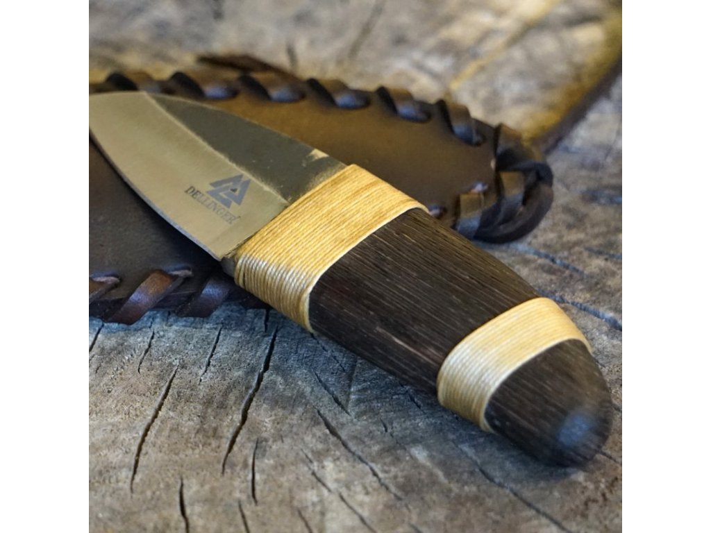 Nůž Dellinger "D2" Ötzi je exkluzivní lovecký nůž s pevnou čepelí a rukojetí vyrobenou z exotického dřeva Wenge, doplněnou o konopný provaz pro pohodlný úchop. Tento nůž je inspirován pazourkem nalezeným u Ötziho, pravěkého člověka žijícího před 3300 lety. Zde jsou klíčové parametry tohoto nože: